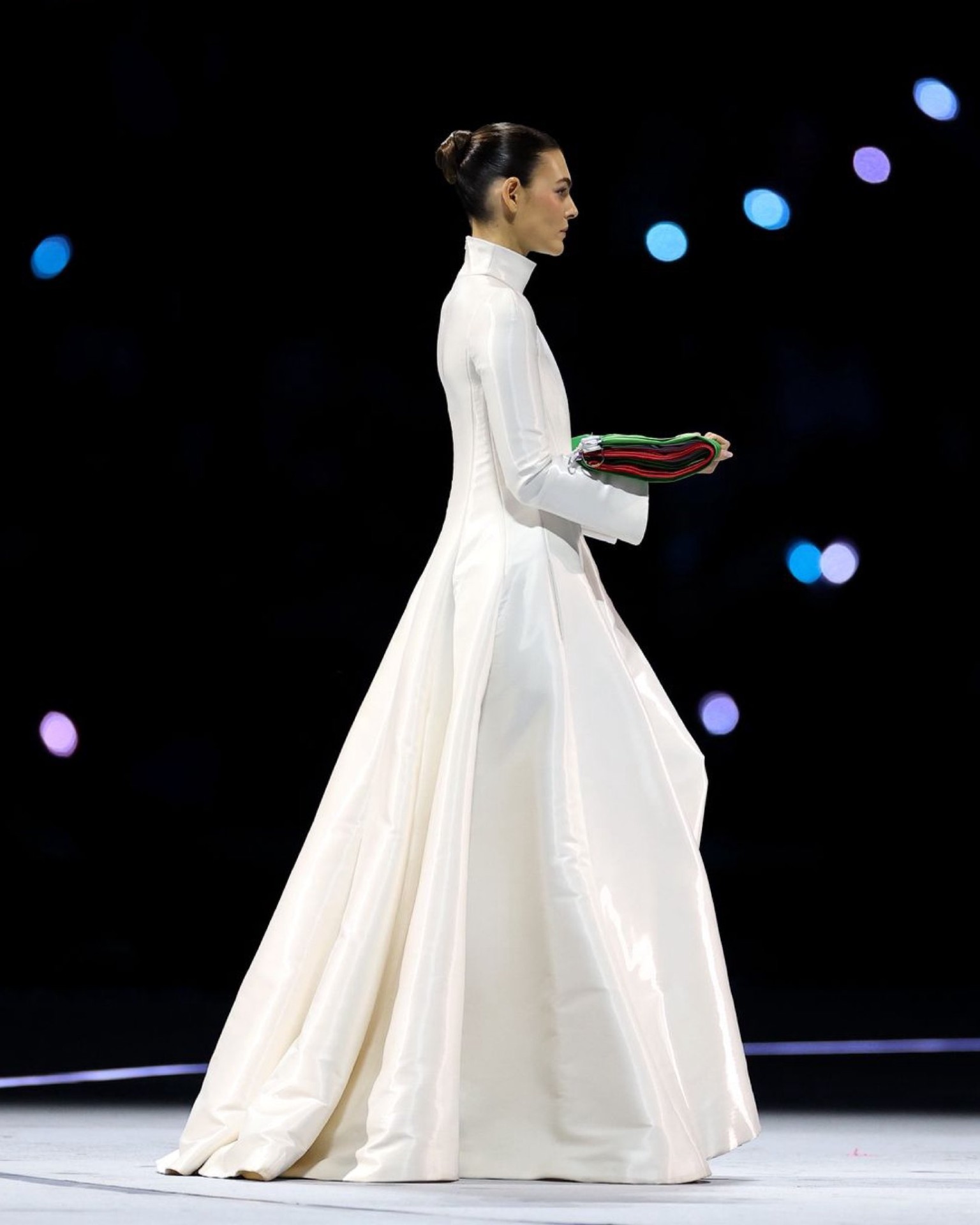 Ceretti, rođena u Brescii, gradu udaljenom oko sat i pol vožnje od Milana, predala je talijansku trobojnicu počasnoj gardi karabinjera - Corazzierima - nedugo nakon nastupa pjevačke dive Mariah Carey. Za ovu je svečanu priliku nosila dugu bijelu haljinu Armani Privé, izrađenu po mjeri, s dramatičnim rukavima i visokim ovratnikom.