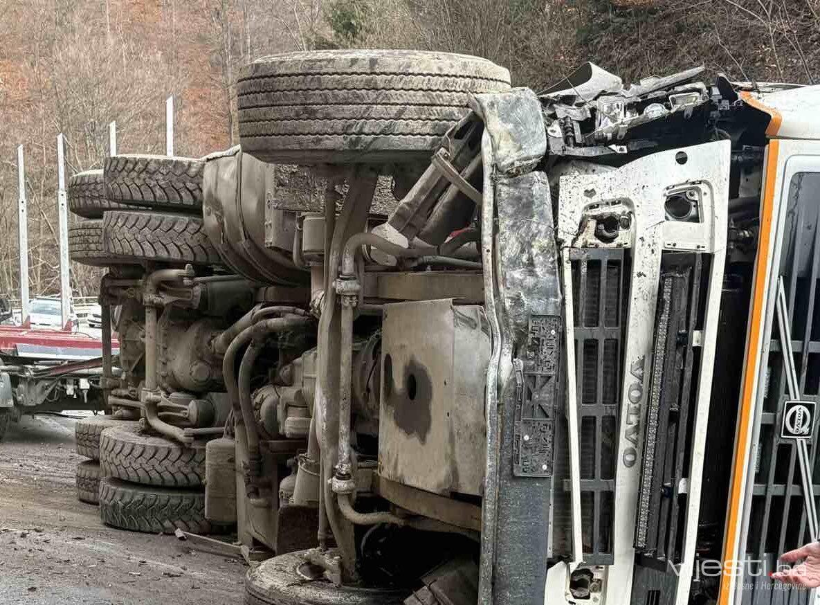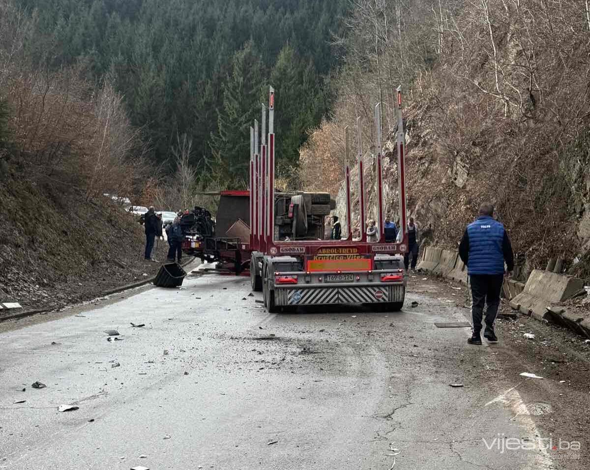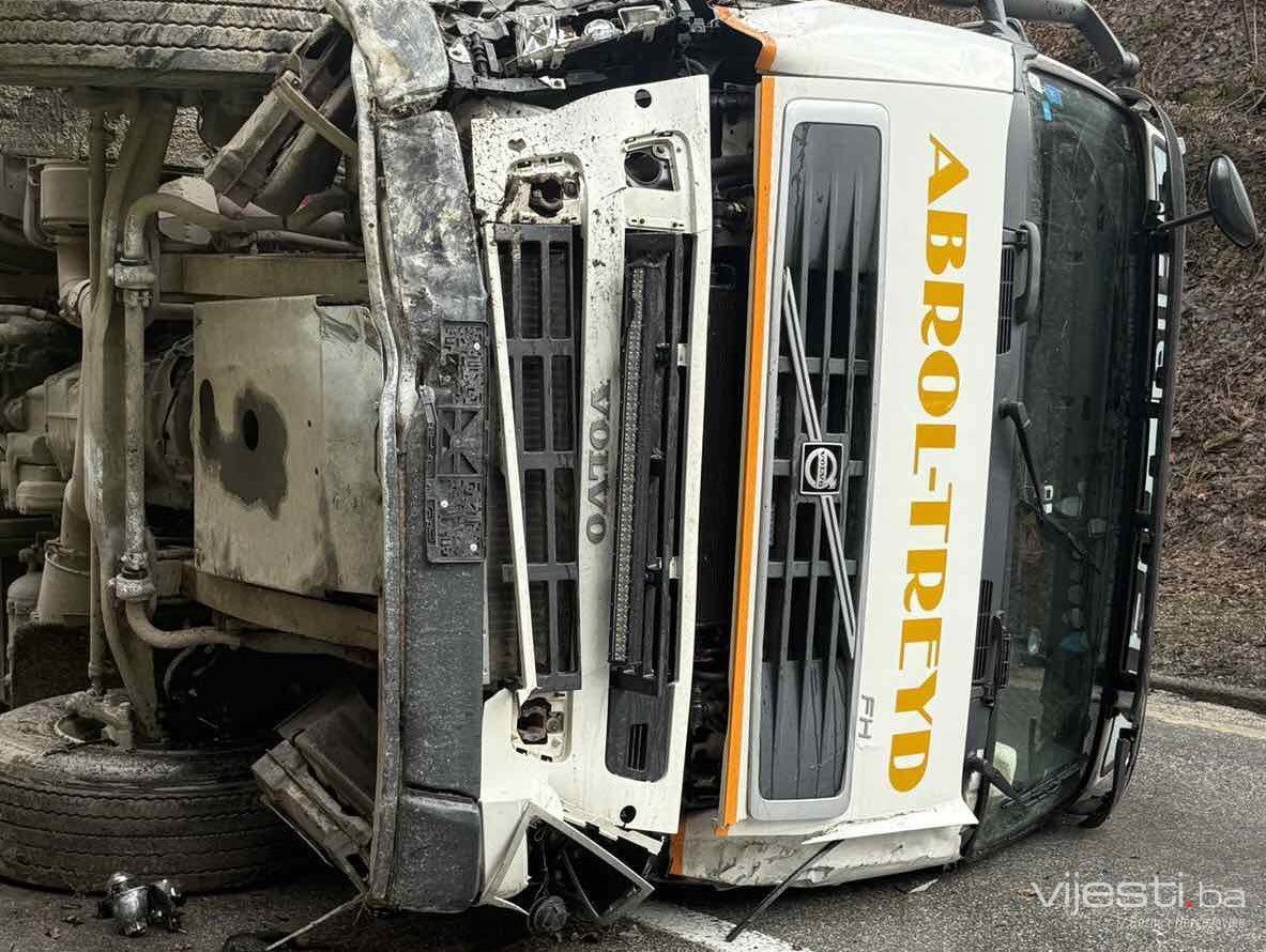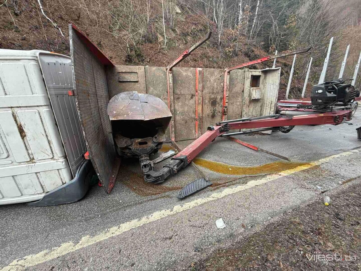 Na putnom pravcu Turbe – Donji Vakuf, na lokaciji Komar kod mosta, danas je došlo do saobraćajne nezgode u kojoj su učestvovali šleper-hladnjača i kamion koji se prilikom sudara prevrnuo na kolovoz.
