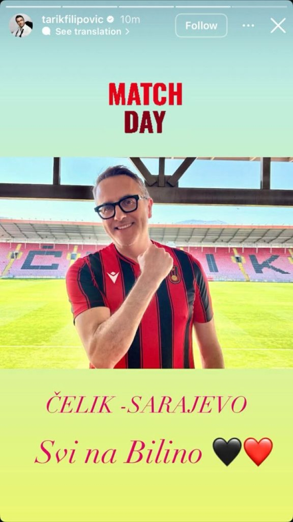 Čelik danas igra jednu od najvećih utakmica u posljednjih nekoliko godina, a Tarik Filipović je iskoristio svoje društvene mreže da pozove sve navijače ovog kluba na Bilino polje.
