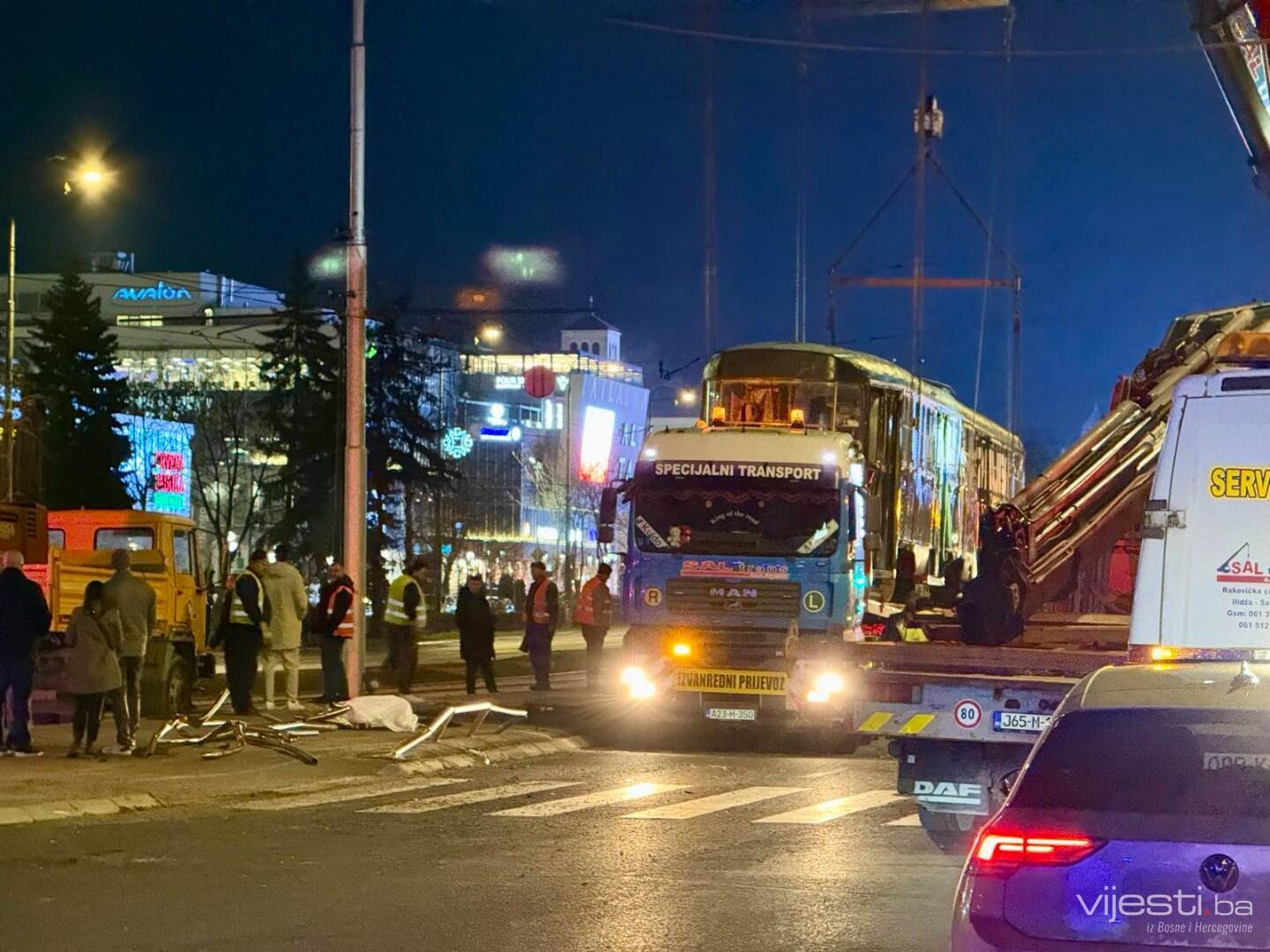 Tramvajska nesreća desila se danas kod Zemaljskog muzeja Bosne i Hercegovine, a uviđaj i izvlačenje tijela nesretnog muškarca trajalo je satima, koliko je trajalo i uklanjanje tramvaja.