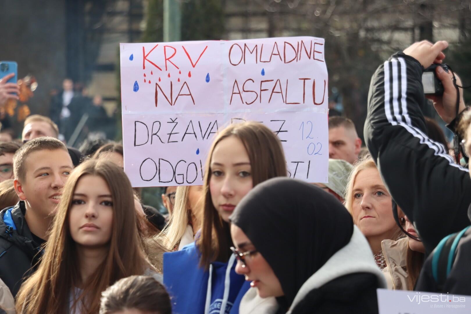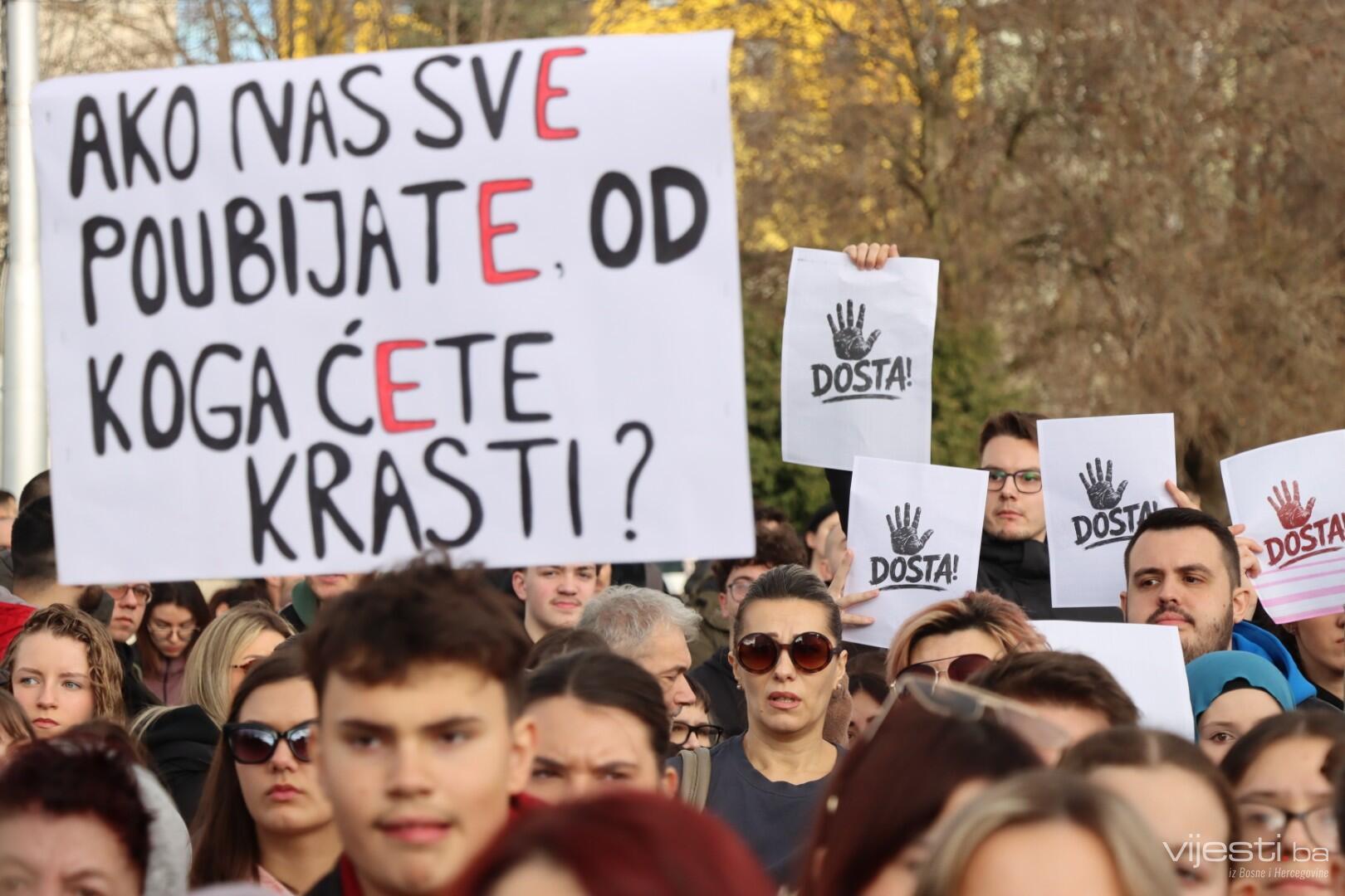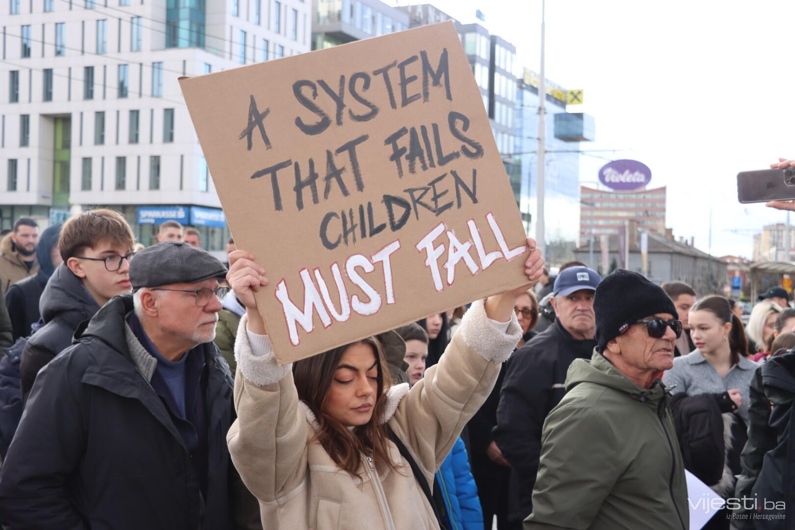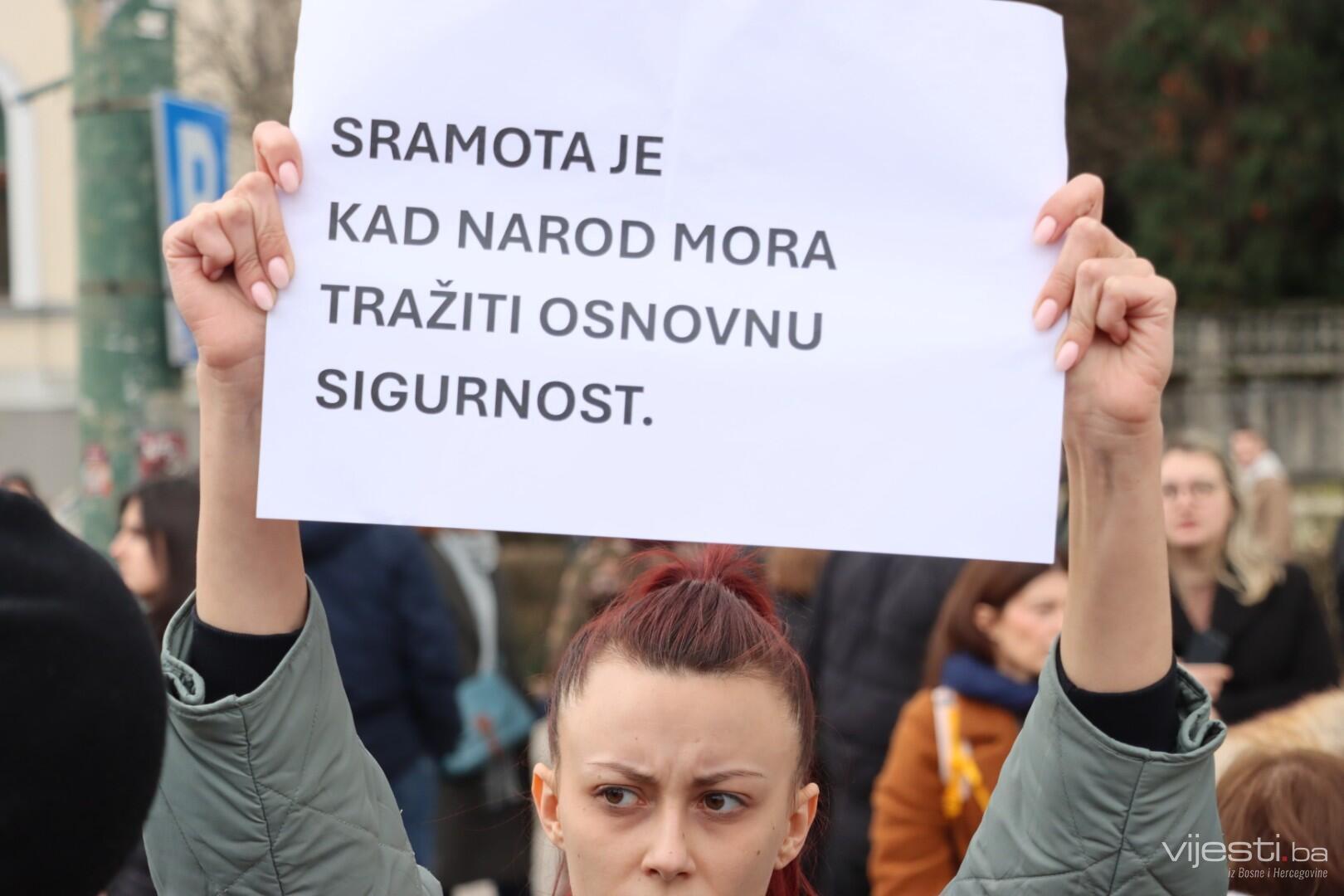 Uz poruke "Ako nas sve poubijate, od koga ćete krasti?", "Da li je potrebno da idemo u školu u strahu" te "Sarajevo plače, ali više ne šuti" pred Zemaljskim muzejem BiH izrazili su nezadovoljstvo, ali i podršku teško povrijeđenoj Elli, 16-godišnjoj djevojci kojoj se ljekari još uvijek bore za život.