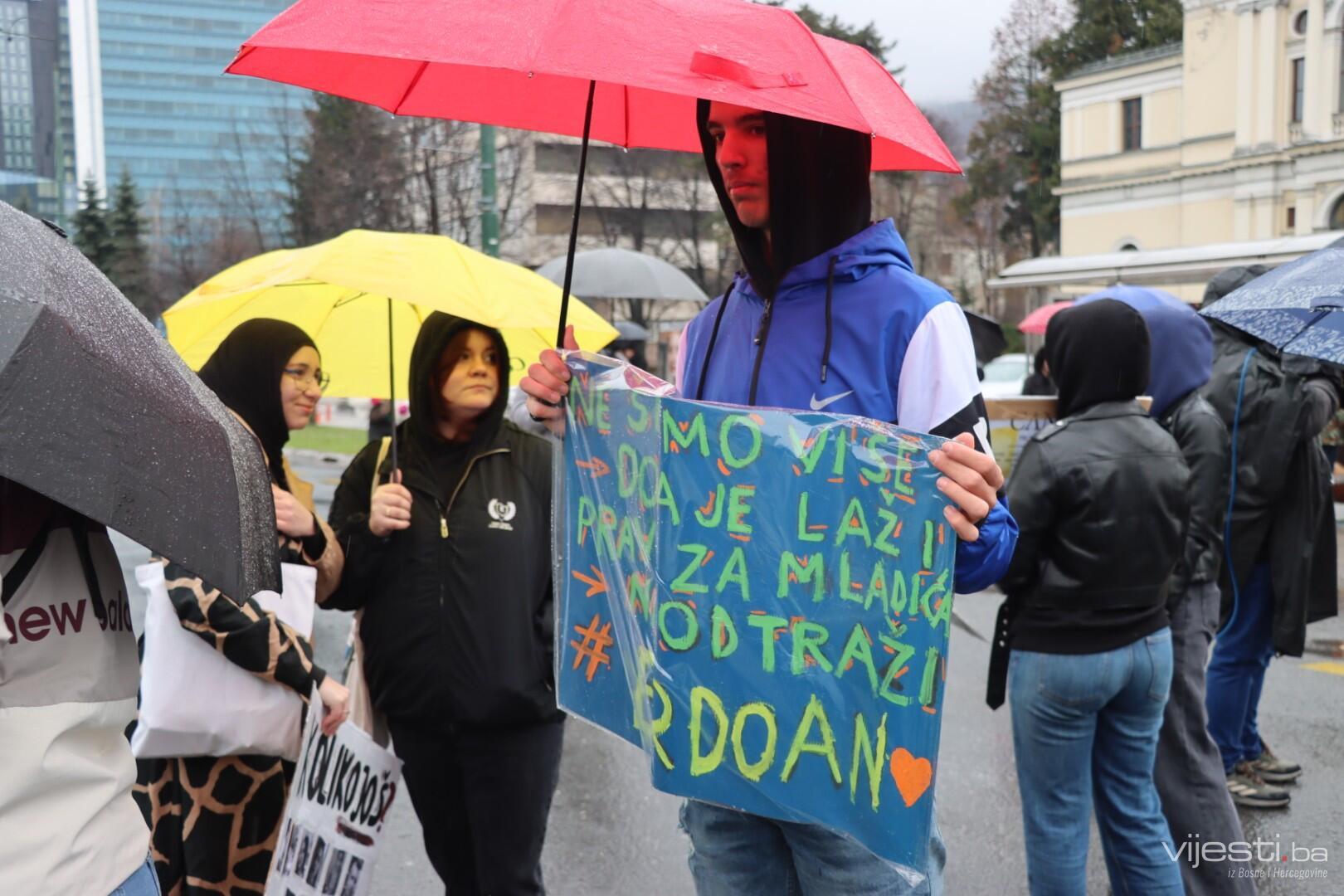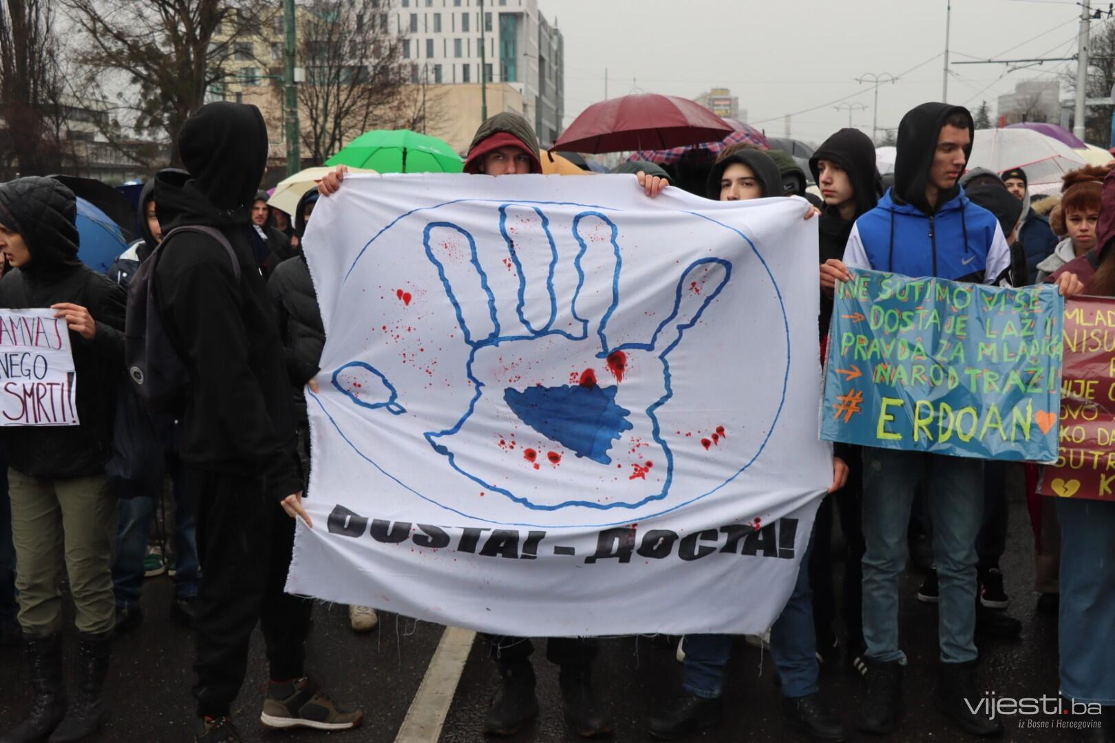 13:29 - "Niko ne želi da preuzme odgovornost. Veoma je jednostavno reći 'Glasajte za mene', ali kada se dešavaju ovakve stvari, niko ne želi preuzeti odgovornost. Zamislite kako je Erdoanovim roditeljima, uskraćen mu je život", rekao je student Tehičkog fakulteta UNSA iz kolone koja ide prema sudu.