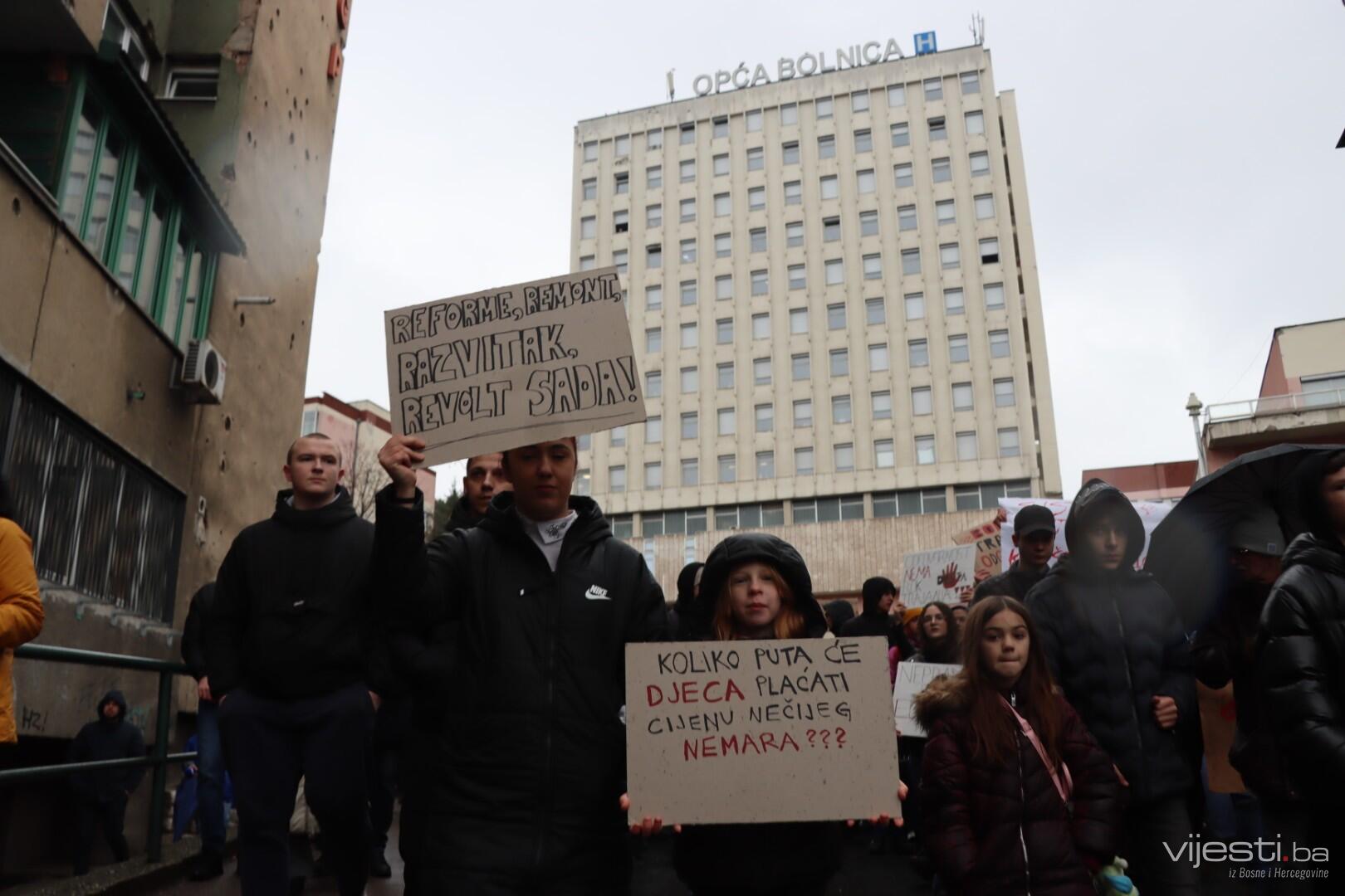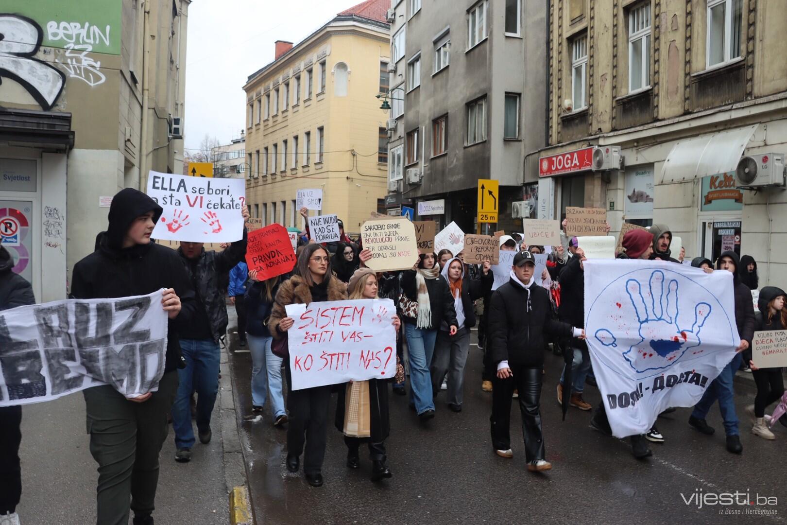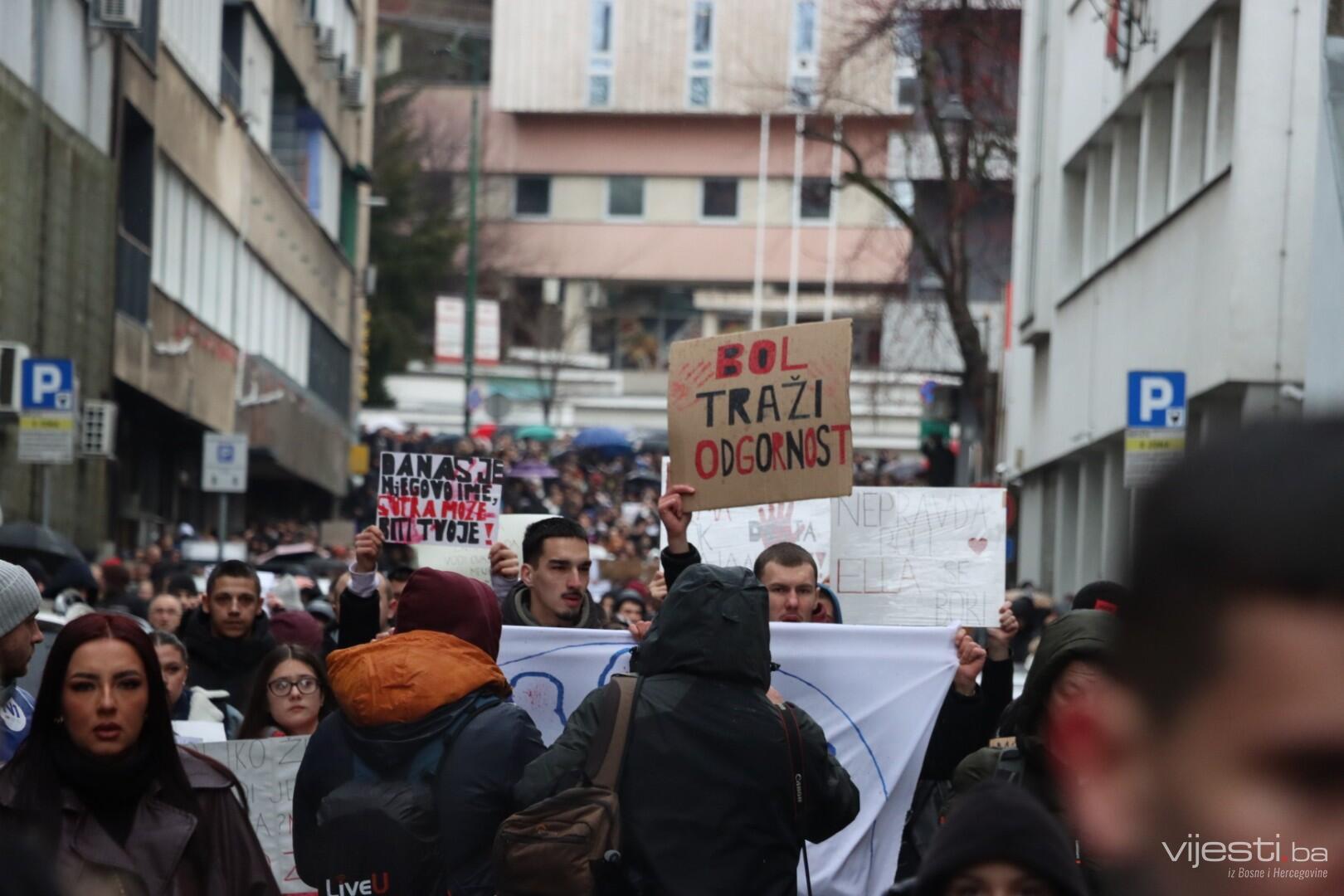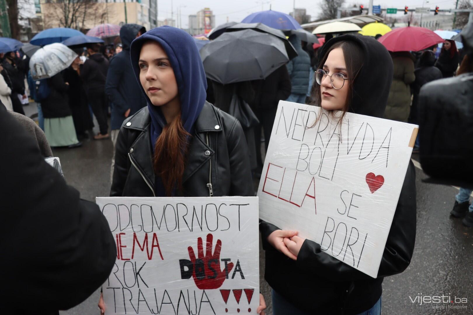 13:12 - Dio građana stigao pred Opću bolnicu kako bi dao podršku povrijeđenoj 16-godišnjakinji "Ella mi te volimo", a u ovim trenucima se kreću prema kantonalnom sudu.