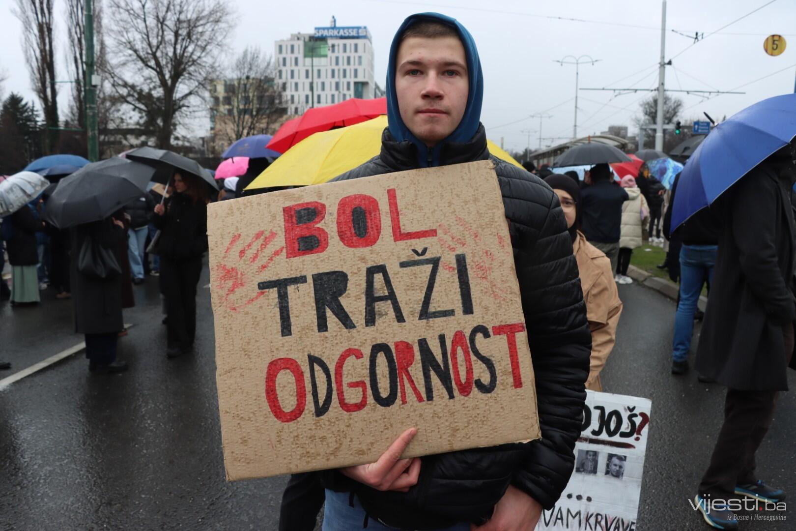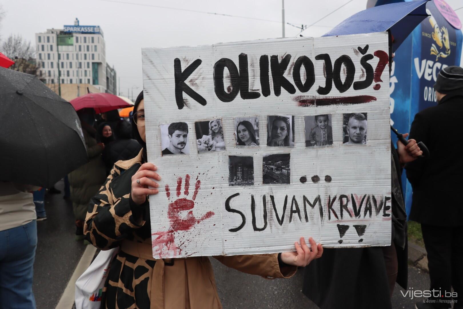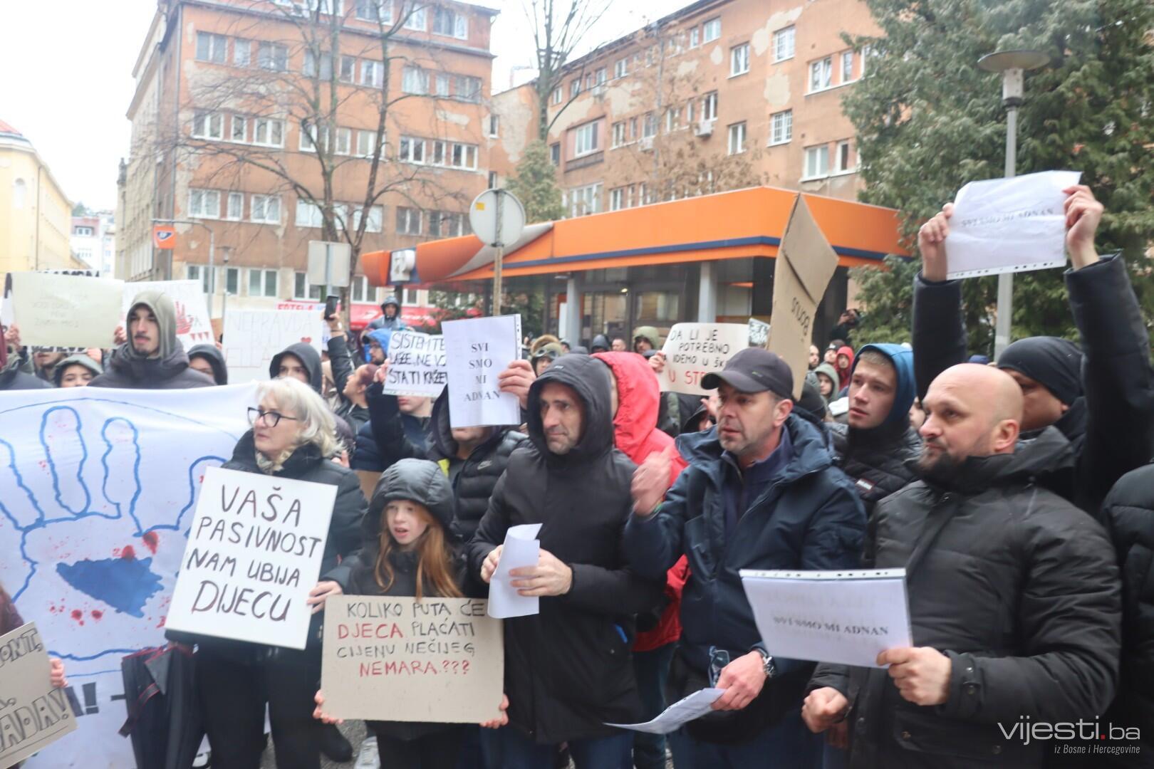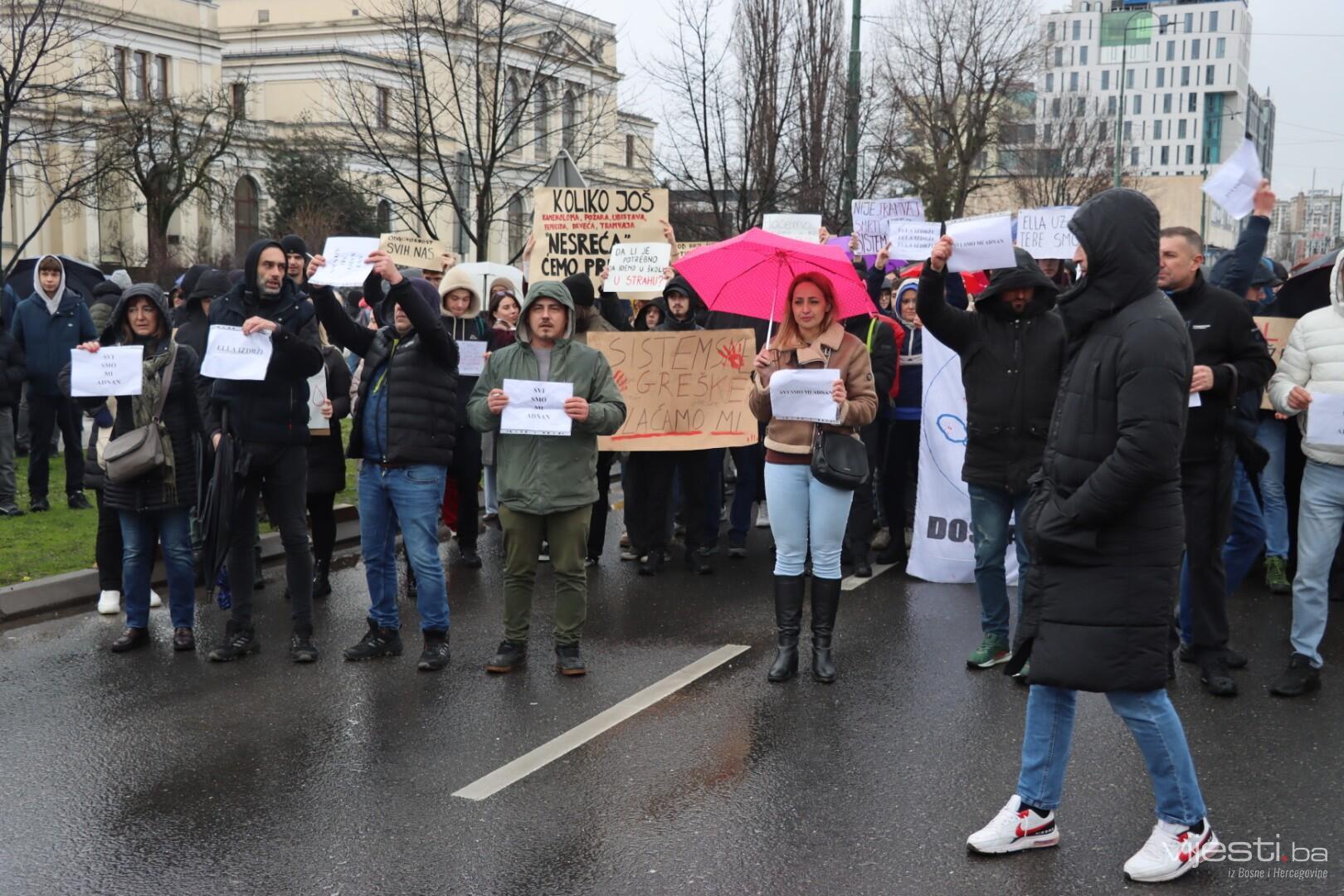 12:46 - Okupljeni su krenuli prema Općoj bolnici. Traže pravdu i za vozača tramvaja. "Pravda za Adnana", skandiraju dok idu ka Općoj bolnici blokiranim ulicama Sarajeva.