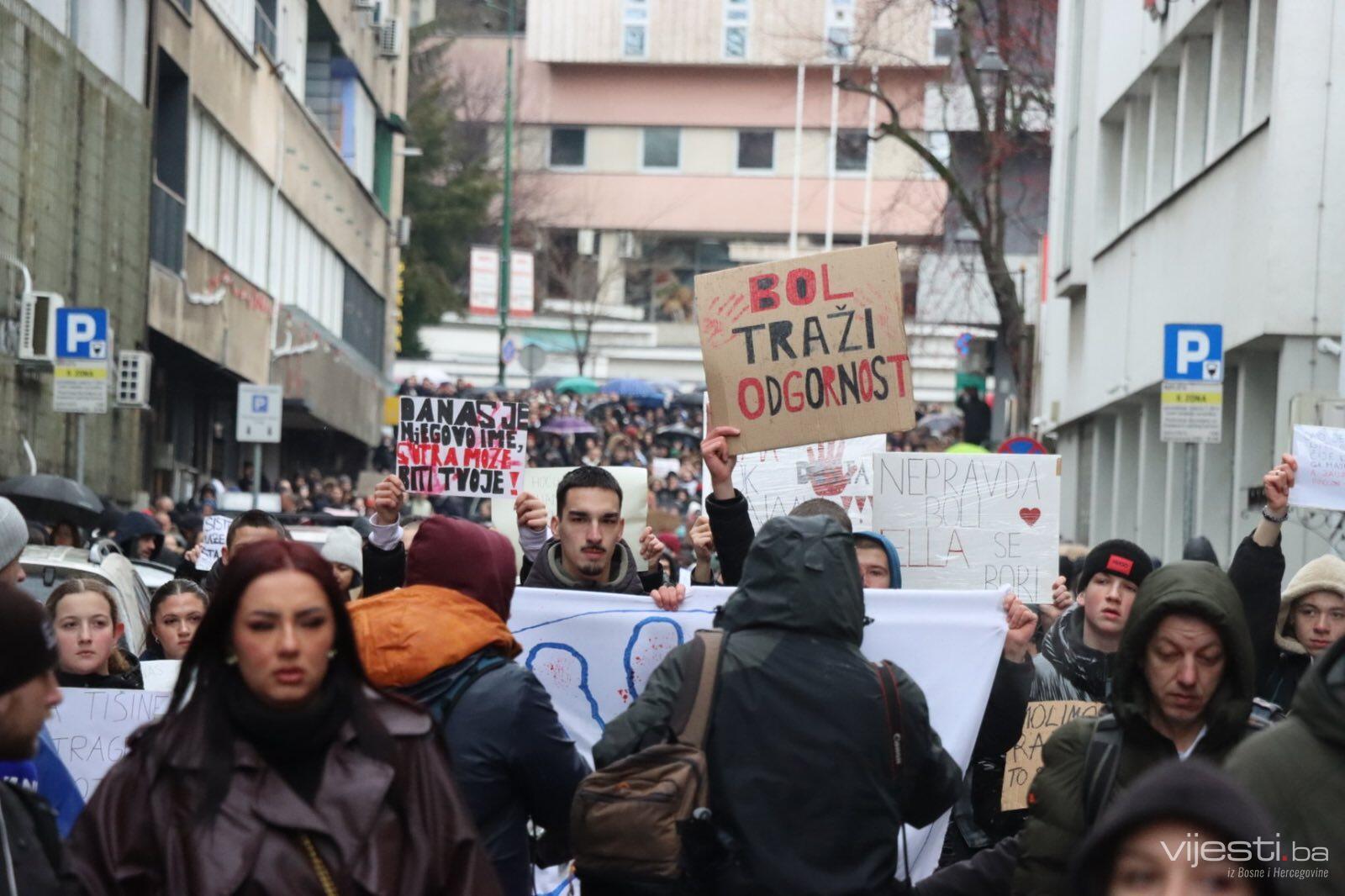 Kolona se zatim uputila prema Kantonalnom sudu, gdje su građani nastavili skandirati „Pravda“ i „Ostavke“, izražavajući nezadovoljstvo sistemom i izostankom preuzimanja odgovornosti.