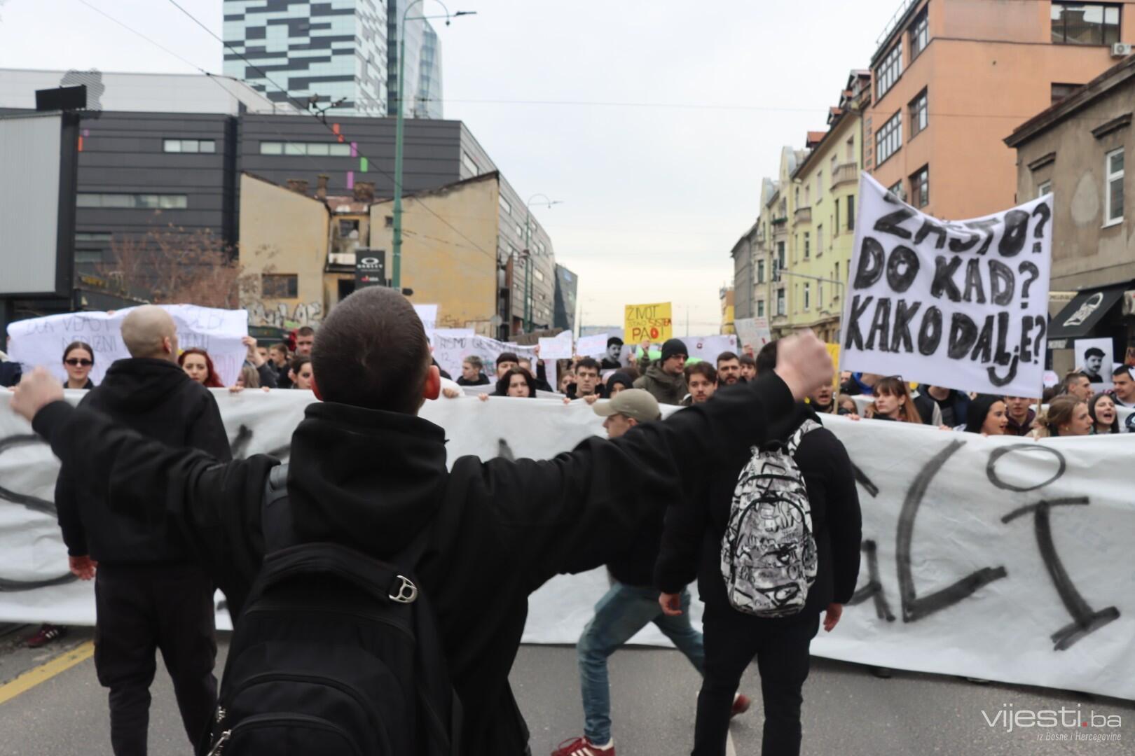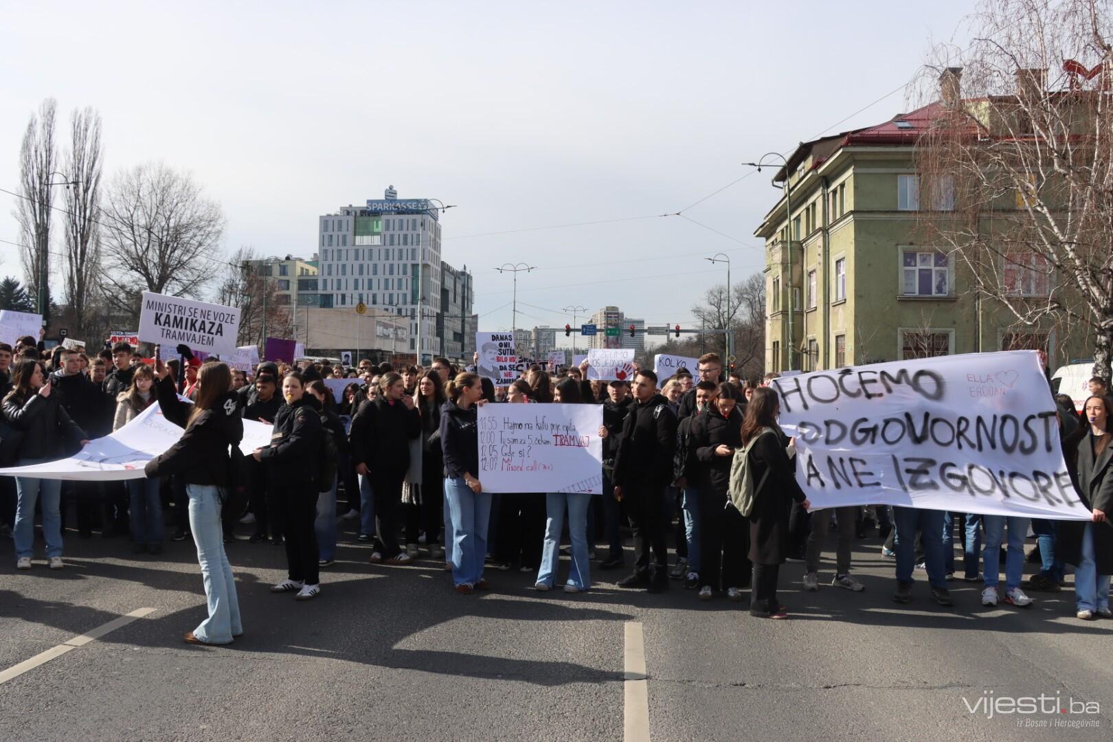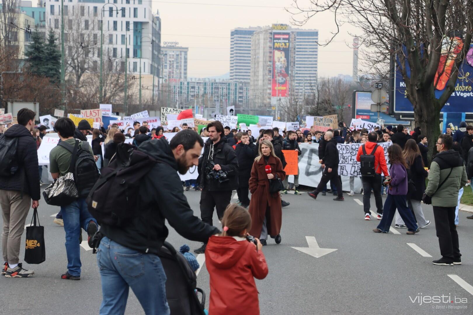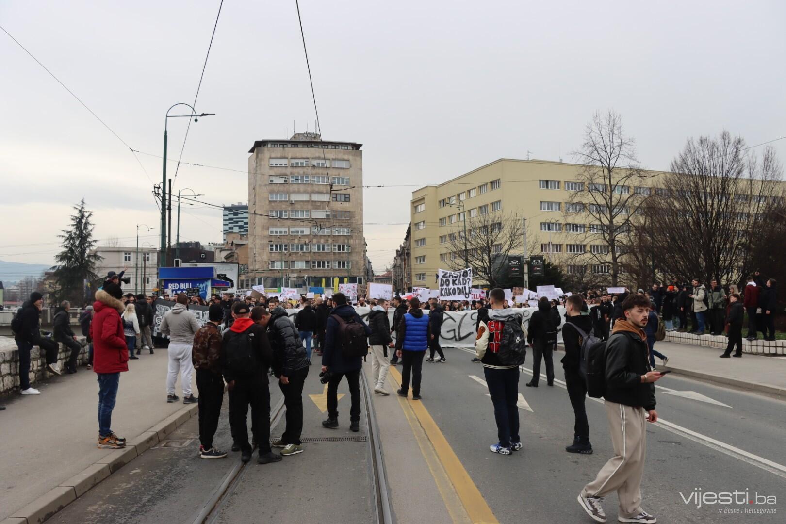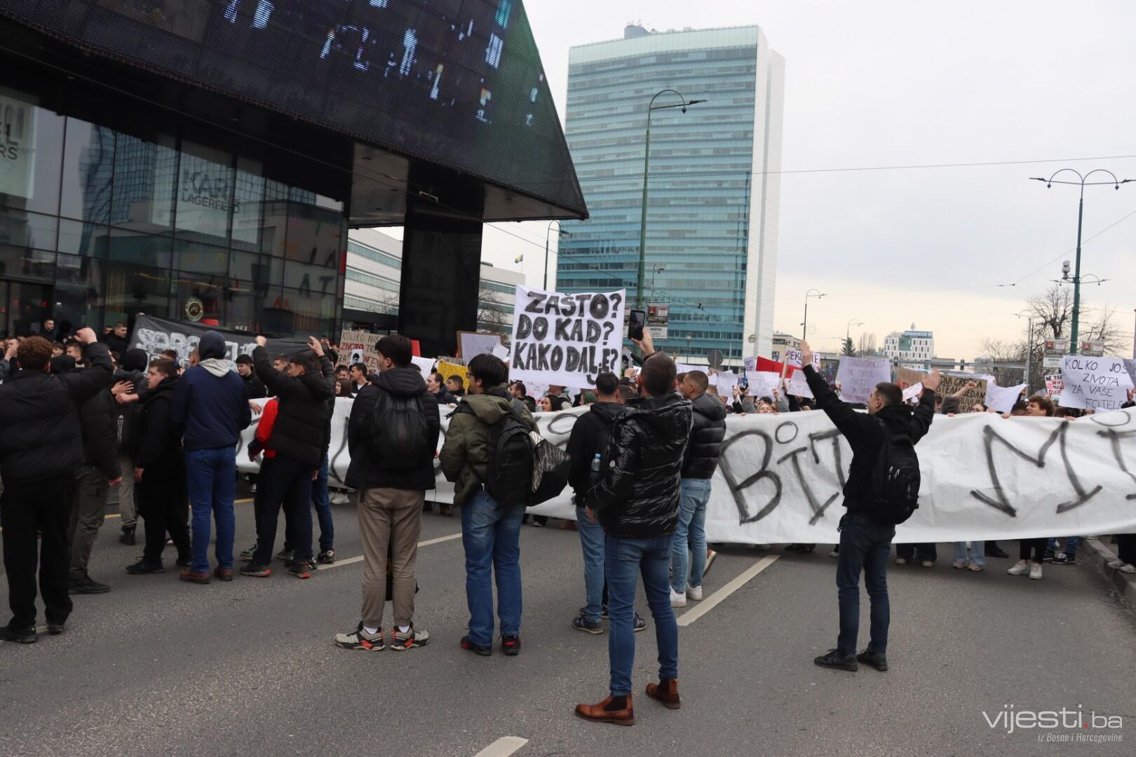 14:17 - Demonstranti sada idu preko Skenderije prema Općoj bolnici, gdje će izraziti podršku povrijeđenoj Elli, a zatim će, za razliku od prethodnih dana, kako javlja N1, doći i ispred Suda Bosne i Hercegovine. Današnja ruta nešto je drukčija od ranijih.