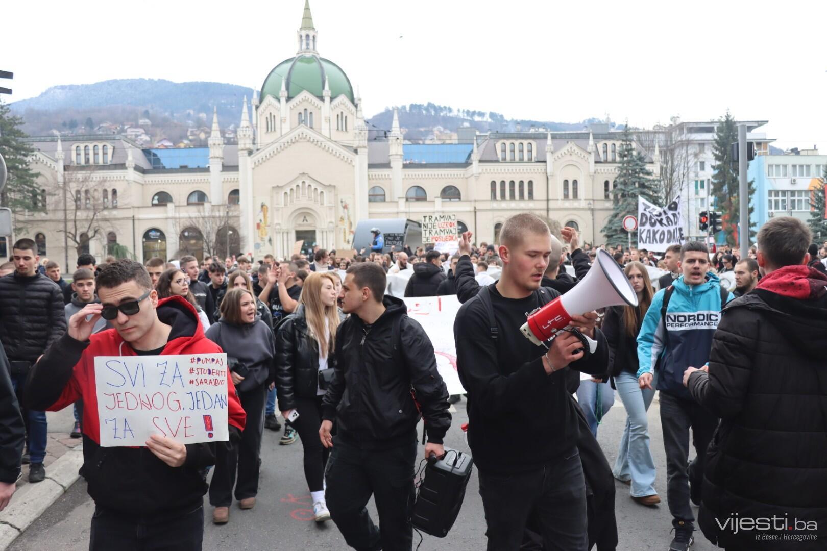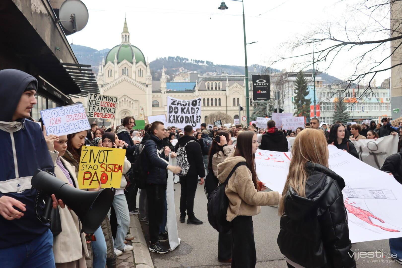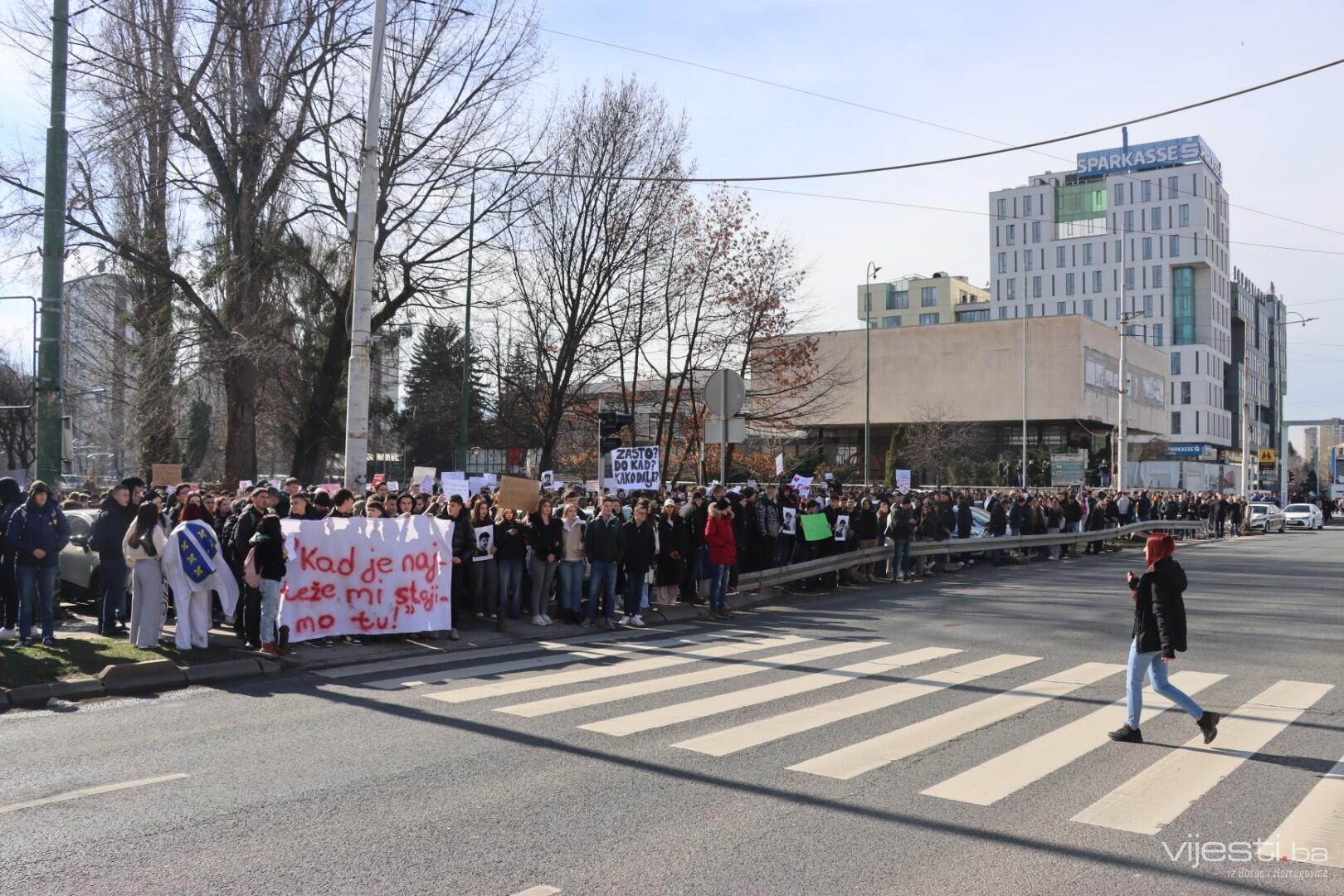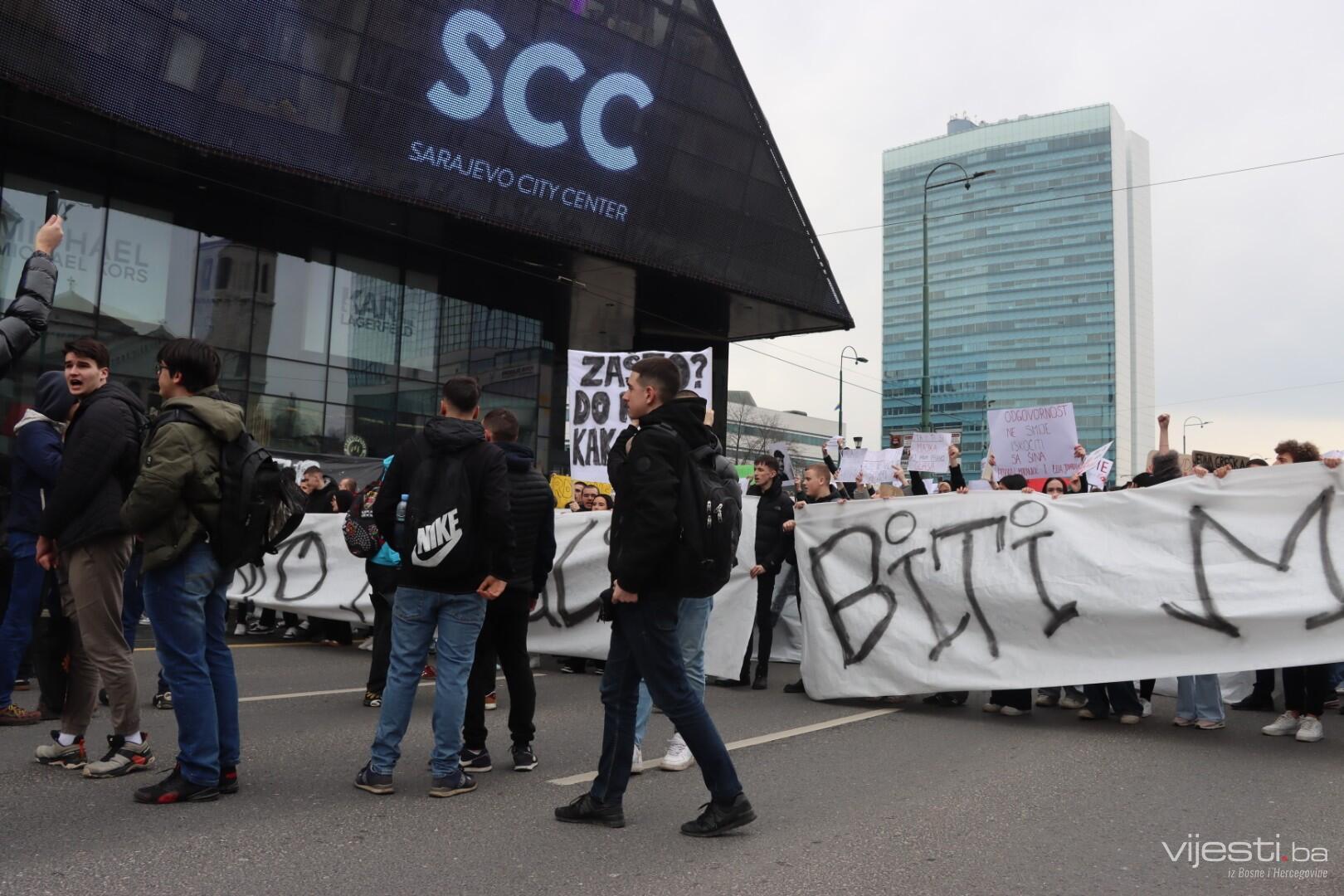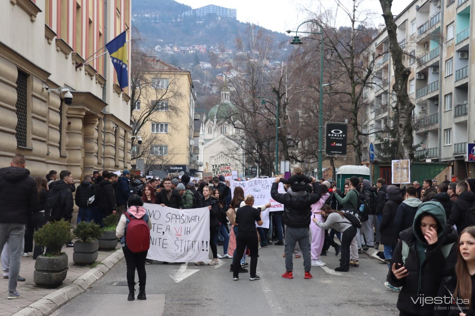 14:17 - Demonstranti sada idu preko Skenderije prema Općoj bolnici, gdje će izraziti podršku povrijeđenoj Elli, a zatim će, za razliku od prethodnih dana, kako javlja N1, doći i ispred Suda Bosne i Hercegovine. Današnja ruta nešto je drukčija od ranijih.