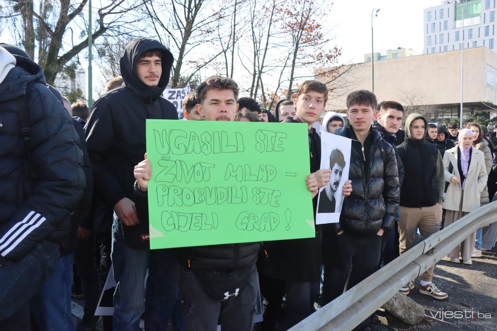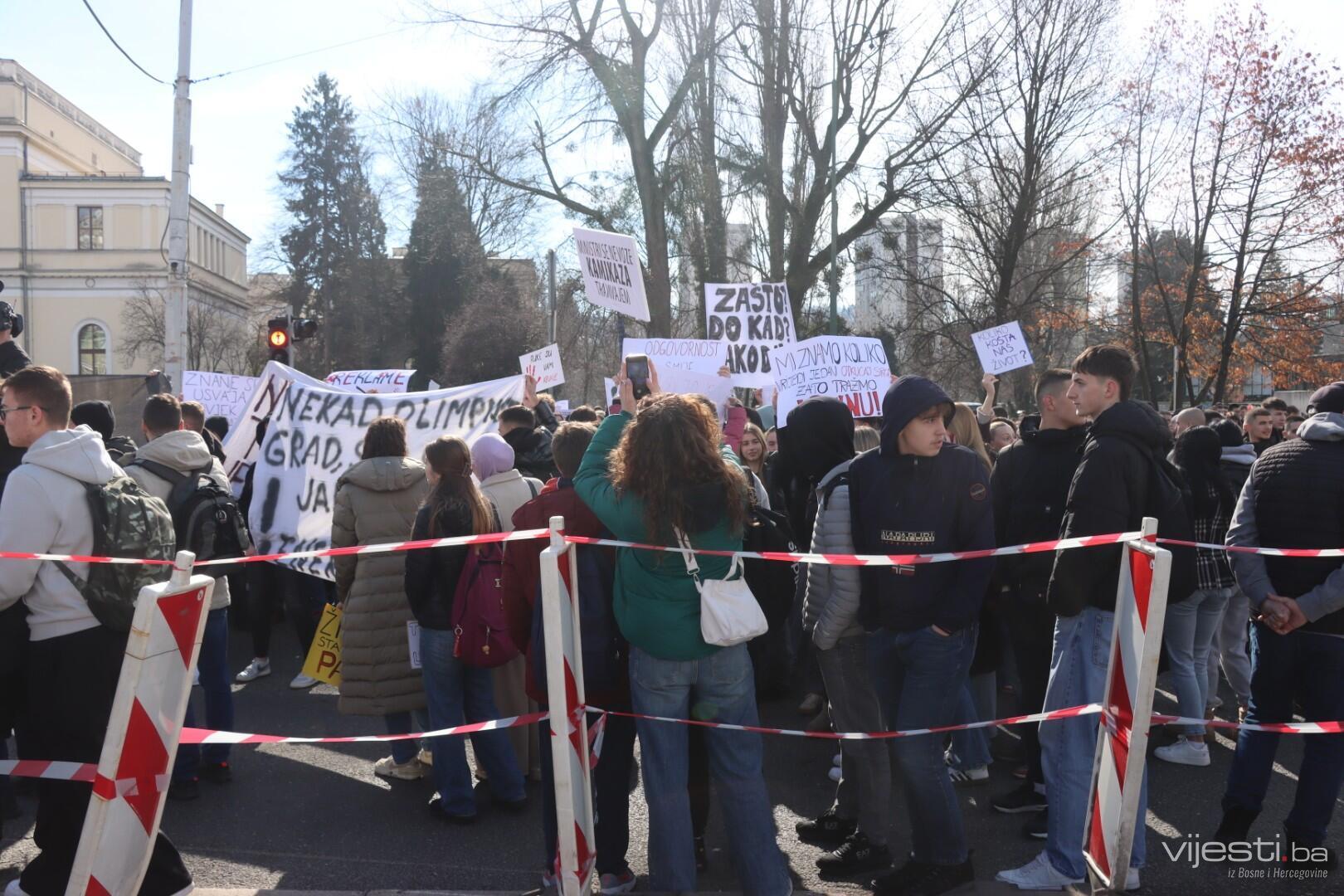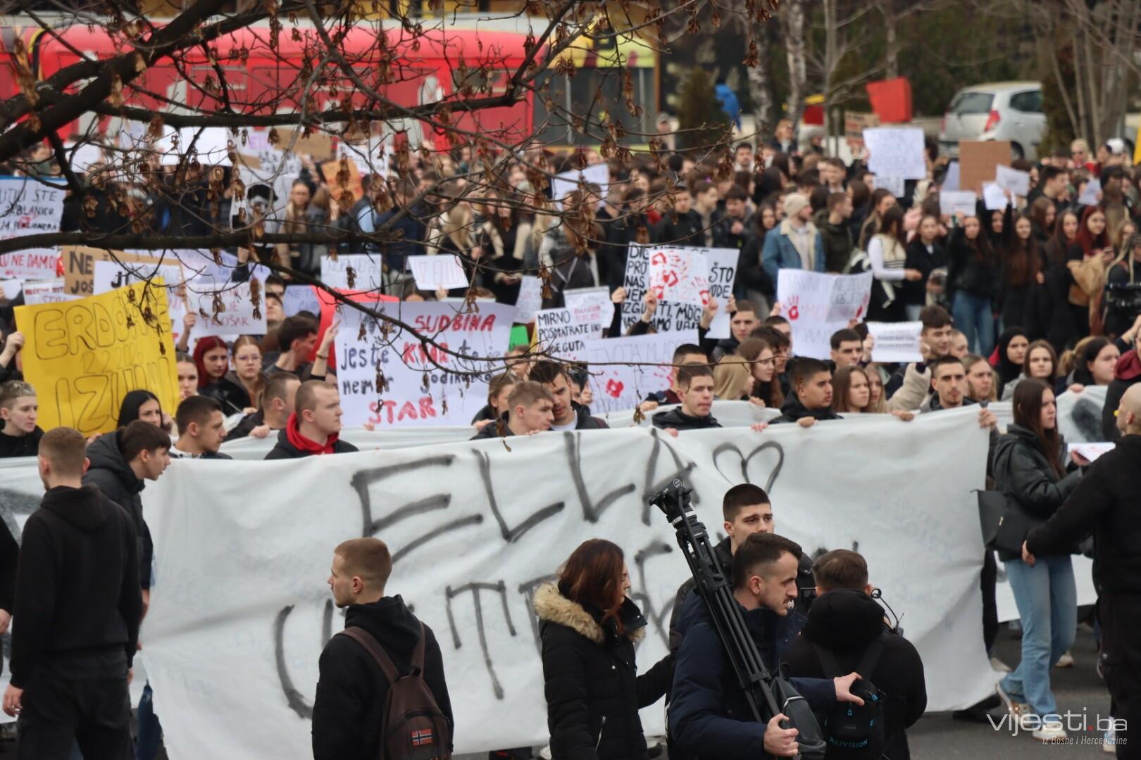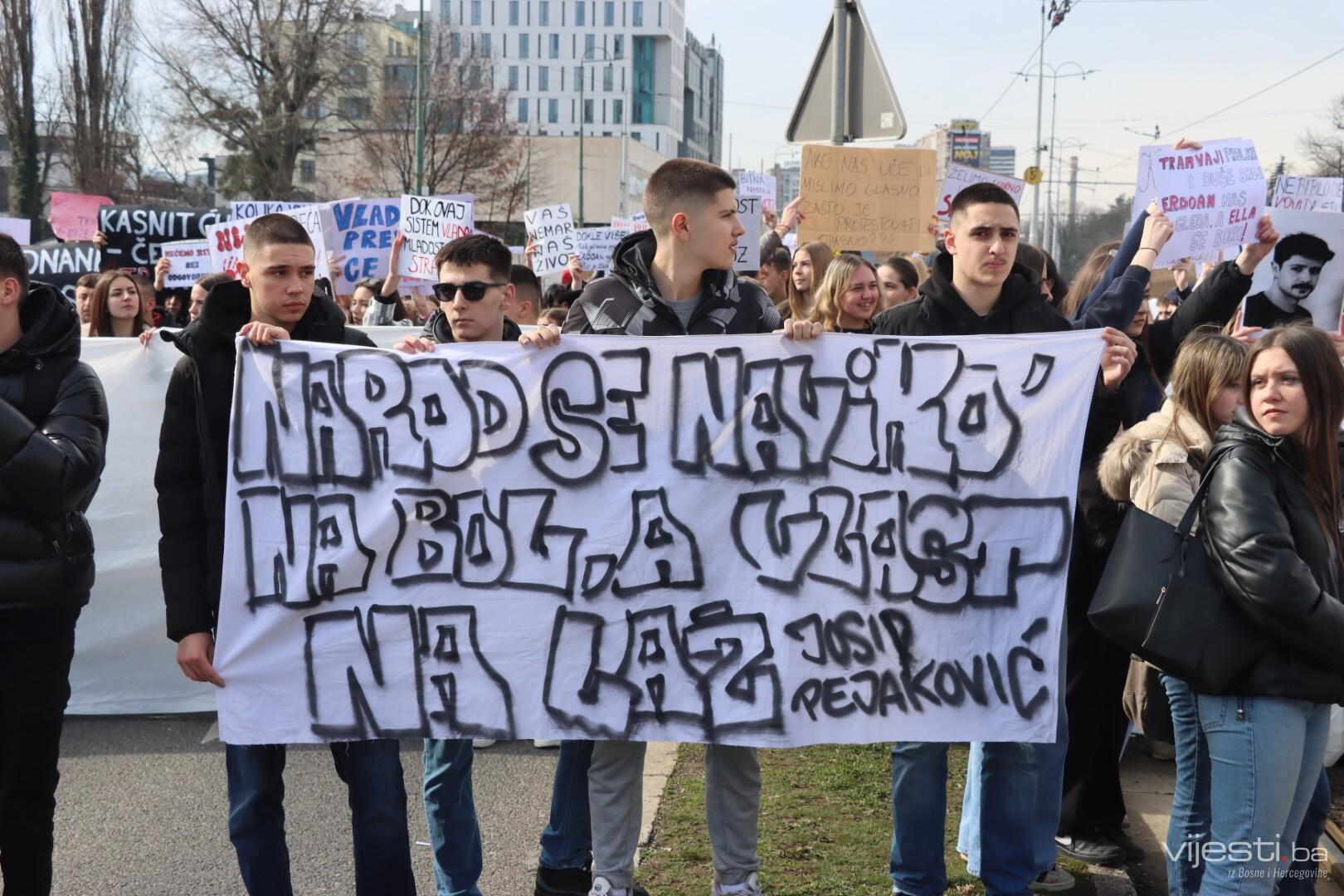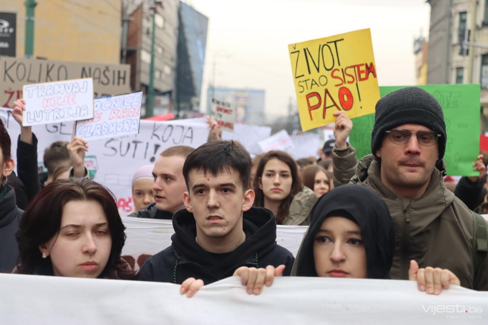 14:17 - Demonstranti sada idu preko Skenderije prema Općoj bolnici, gdje će izraziti podršku povrijeđenoj Elli, a zatim će, za razliku od prethodnih dana, kako javlja N1, doći i ispred Suda Bosne i Hercegovine. Današnja ruta nešto je drukčija od ranijih.
