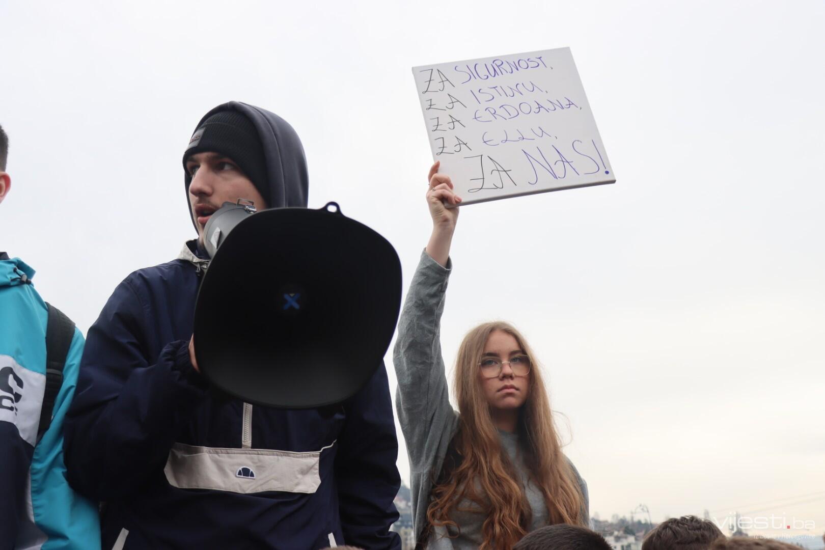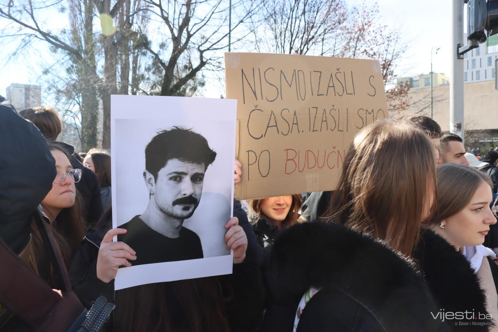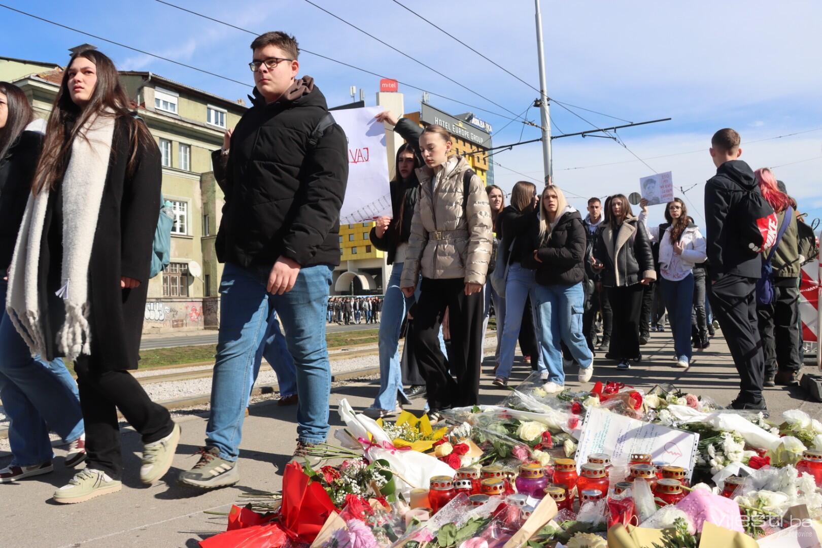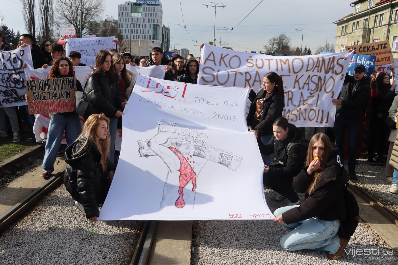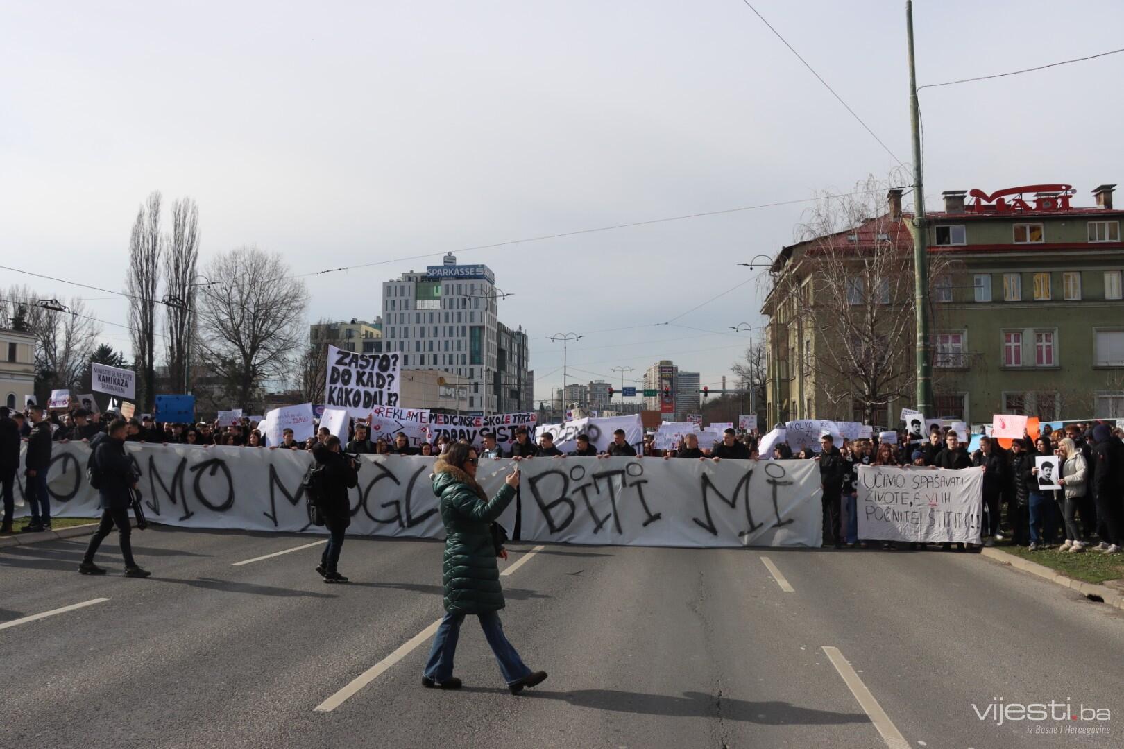 14:17 - Demonstranti sada idu preko Skenderije prema Općoj bolnici, gdje će izraziti podršku povrijeđenoj Elli, a zatim će, za razliku od prethodnih dana, kako javlja N1, doći i ispred Suda Bosne i Hercegovine. Današnja ruta nešto je drukčija od ranijih.
