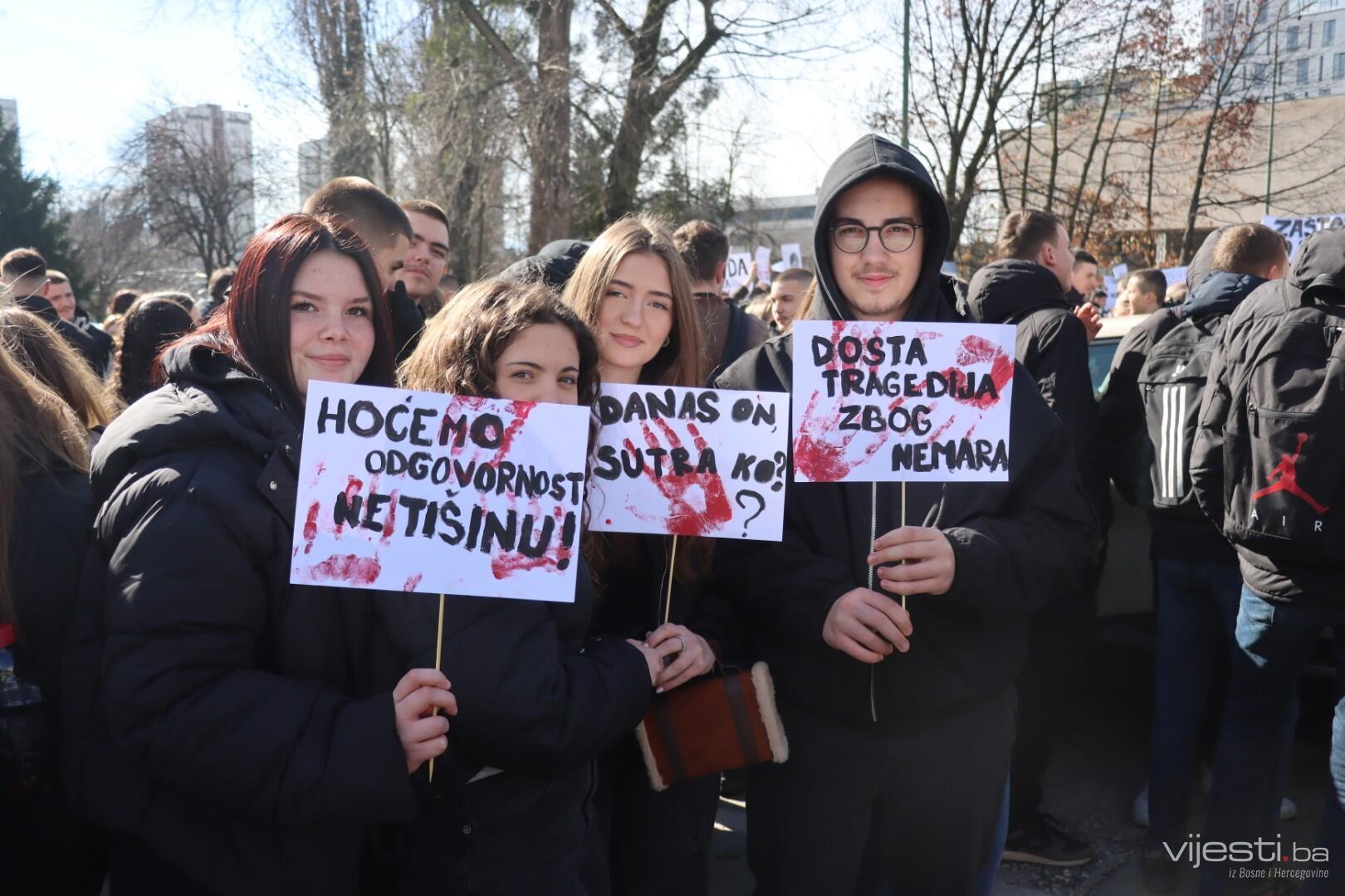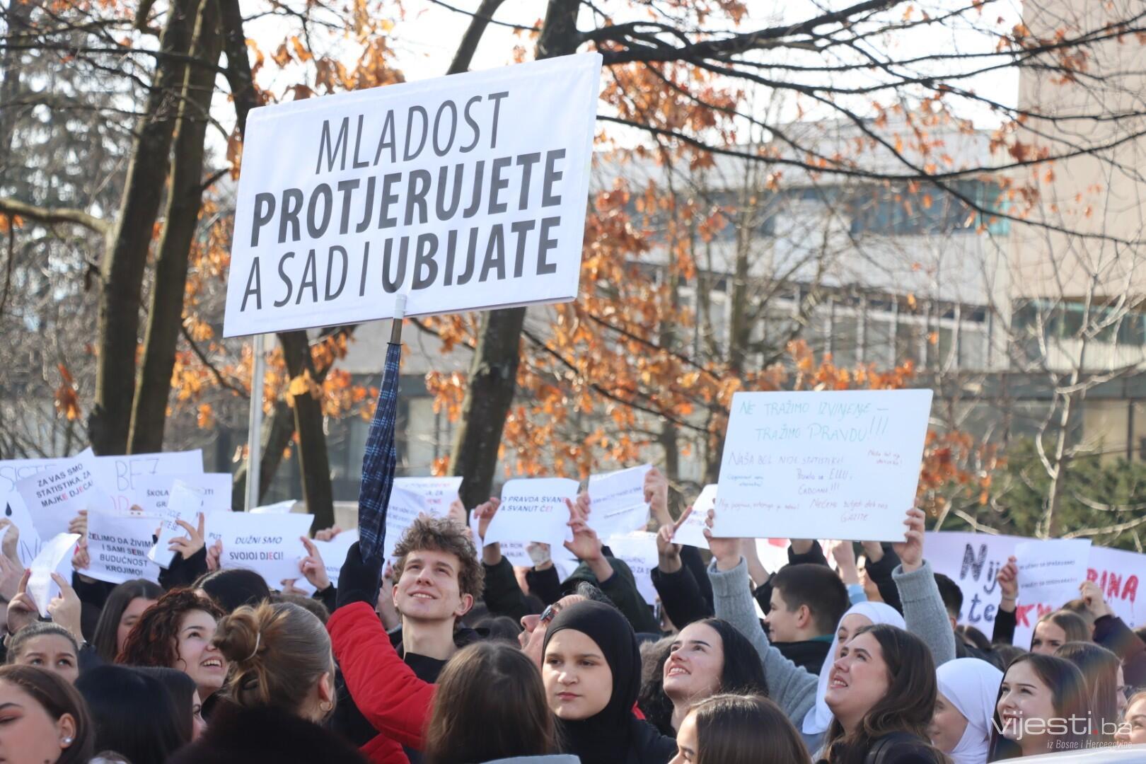 13:28 - Tokom protesta mladi su nosili transparente sa snažnim porukama upućenim nadležnima.