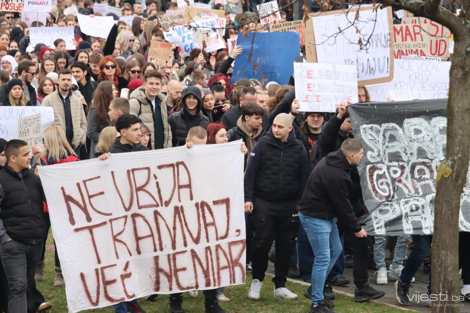 13:25 - Građani su u ovim trenucima stigli do Skenderije, odakle idu prema Tužilaštvu