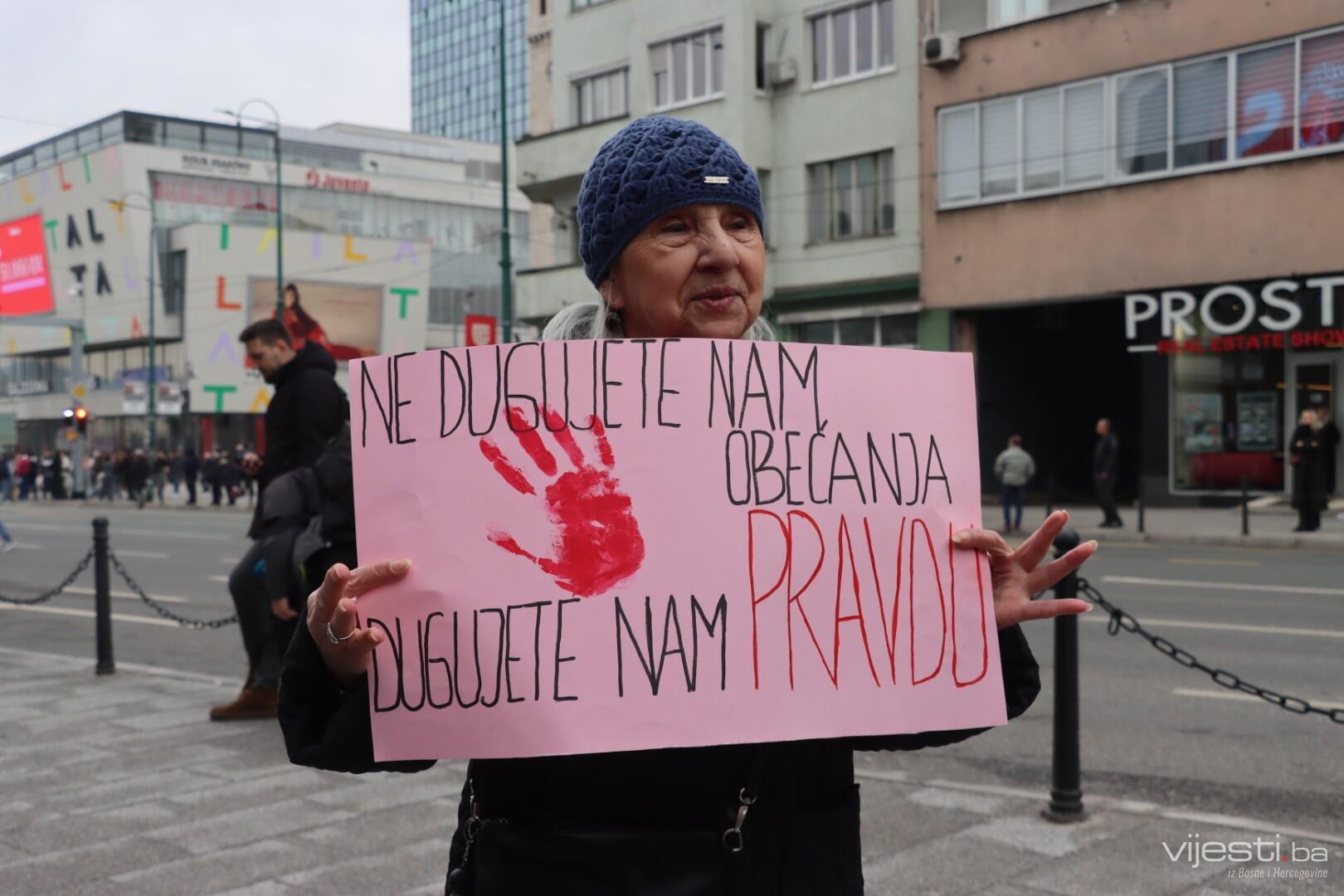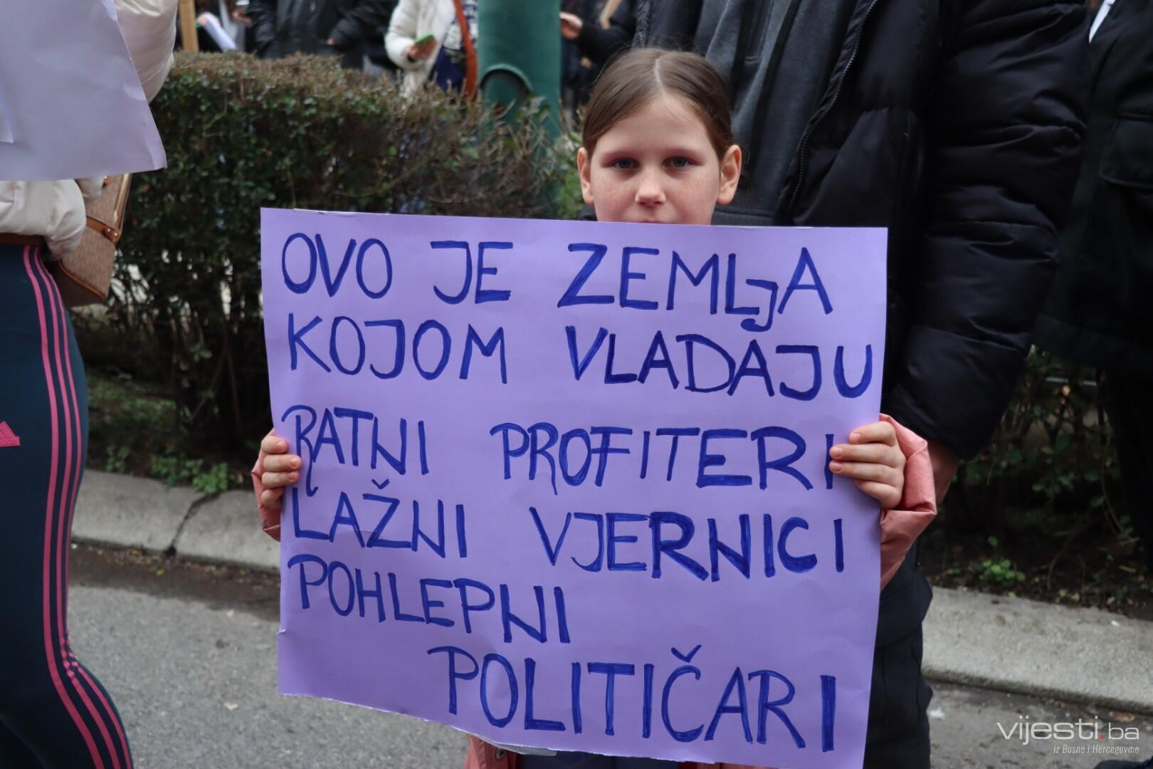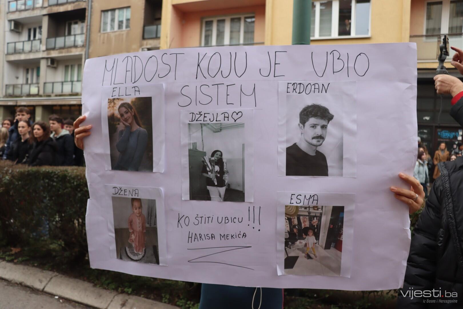 12:20 - "Sarajevo grade, šta ti papci rade". Ovo su poruke sa današnjih transparenata. Održana je minuta šutnje, a uskoro će kolona krenuti prema Općoj bonici gdje se liječi Ella Jovanović.
