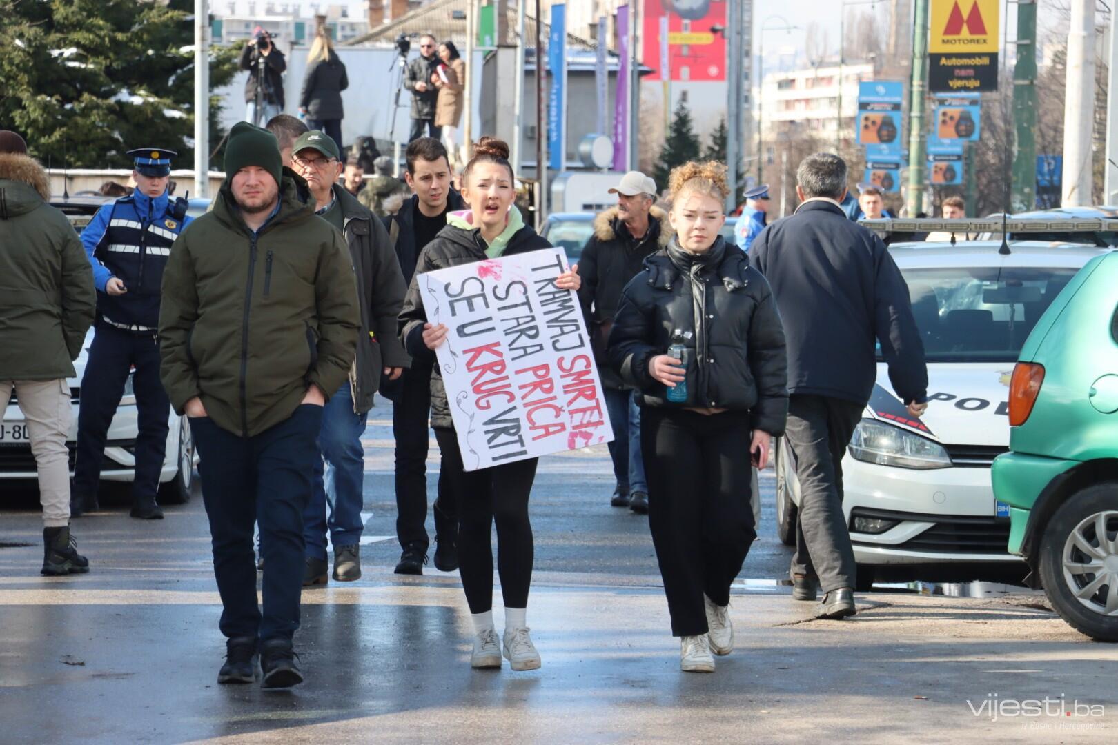 12:43 - Kolona je krenula od Zemaljskog muzeja, ide najprije do kantonalnog tužilaštva.