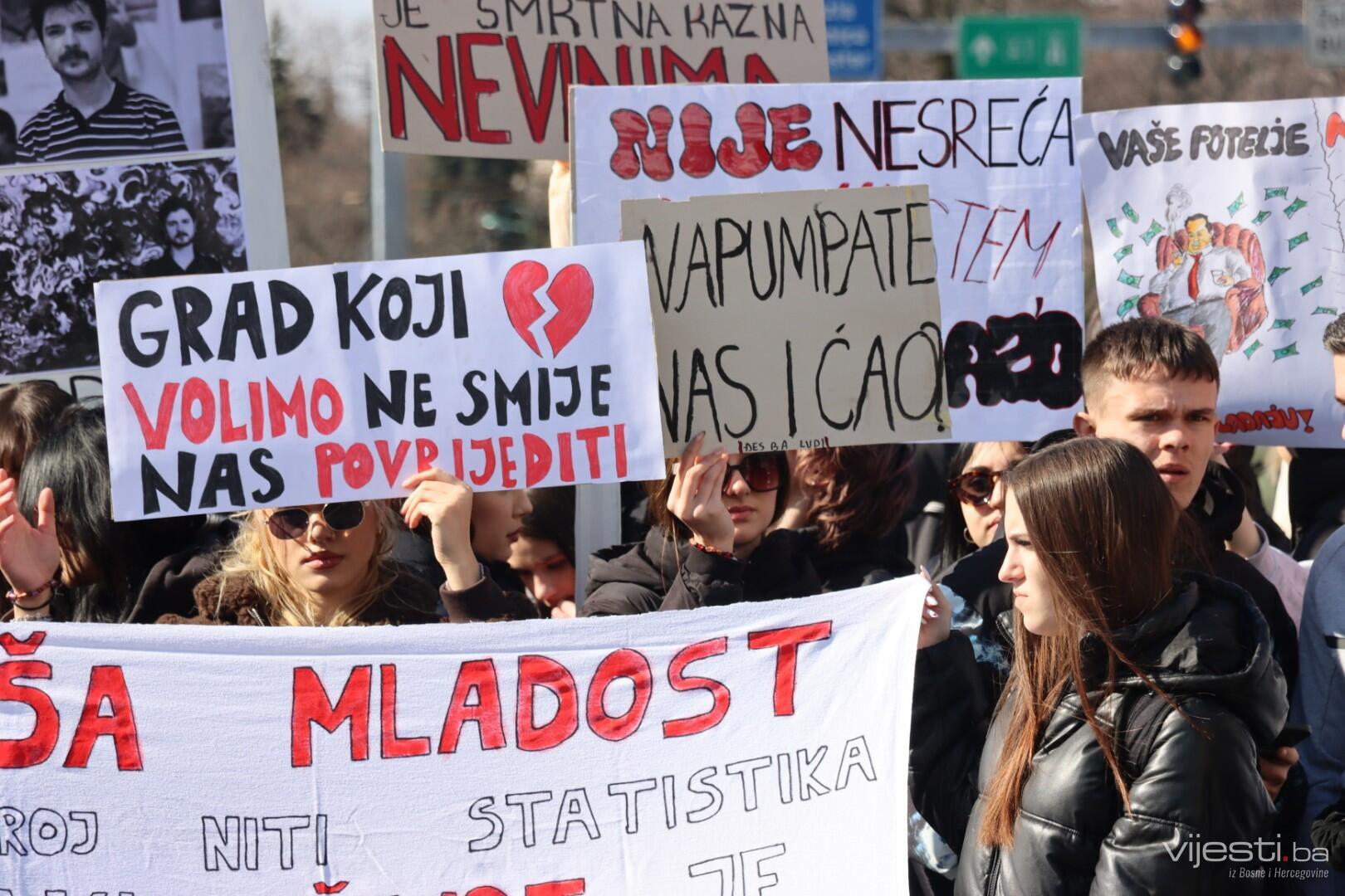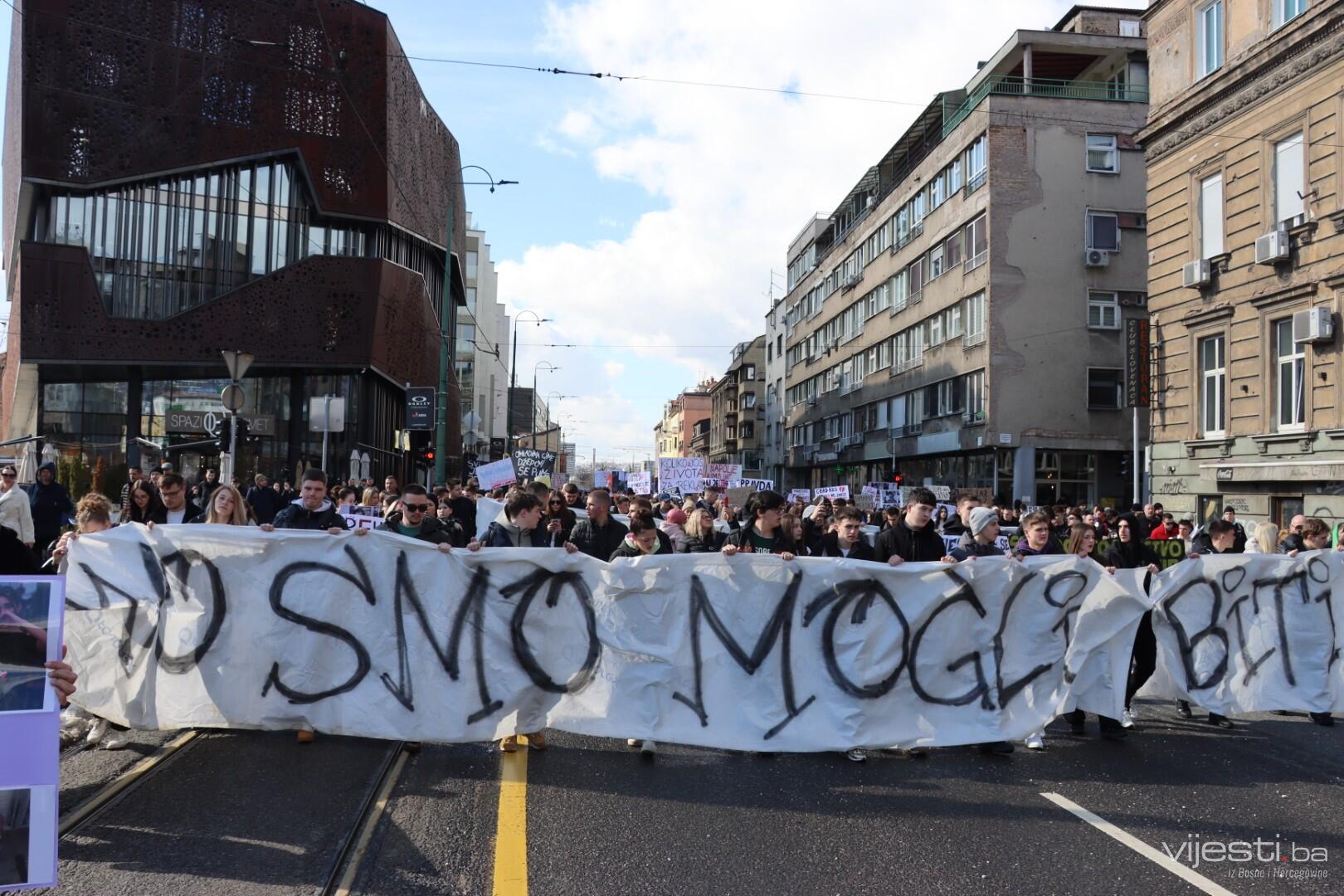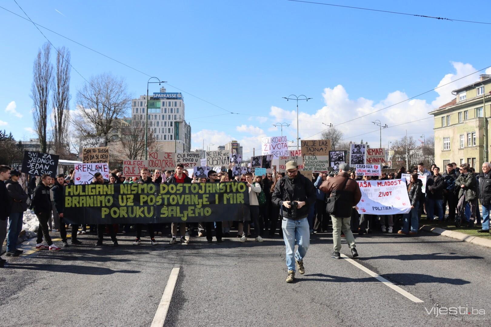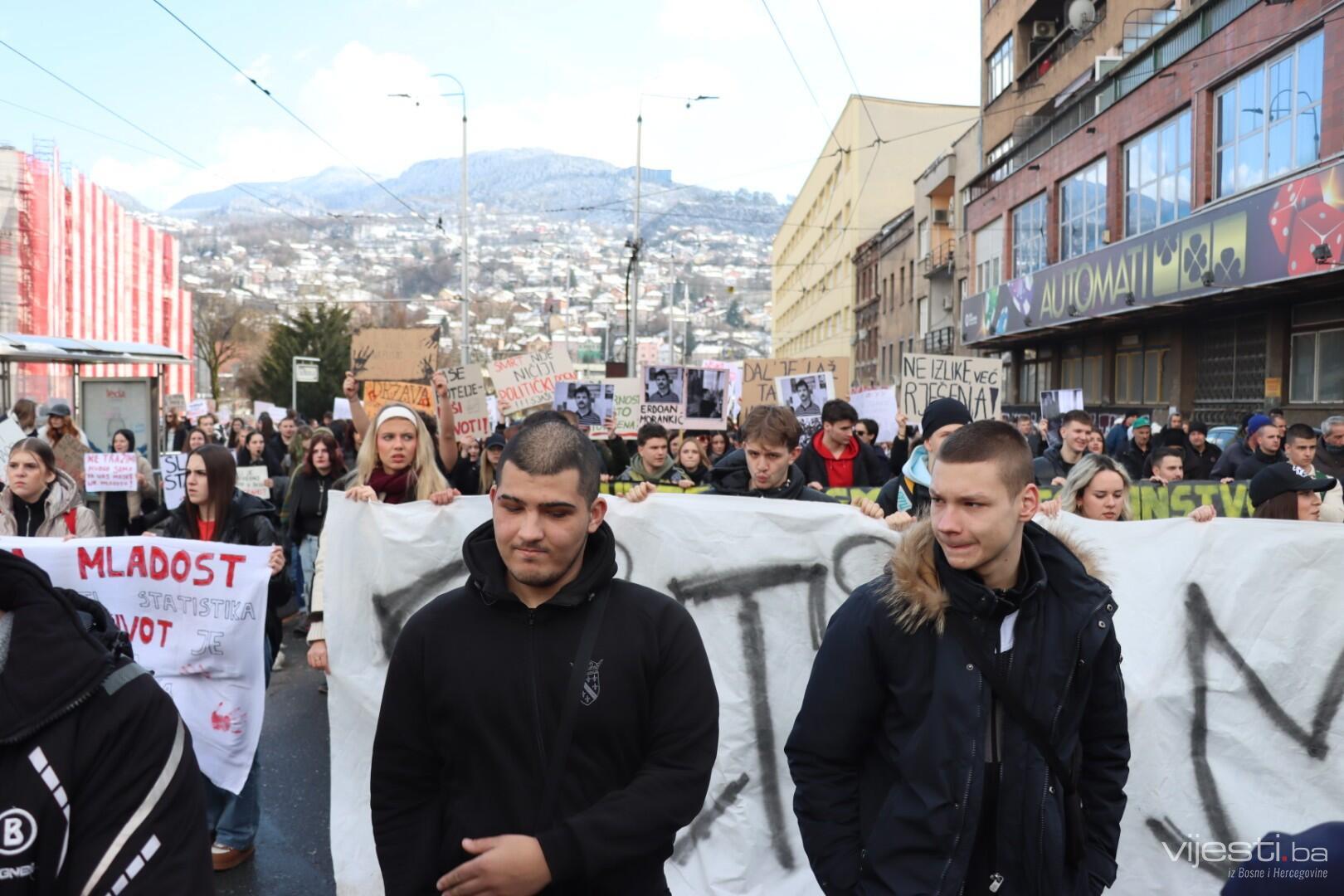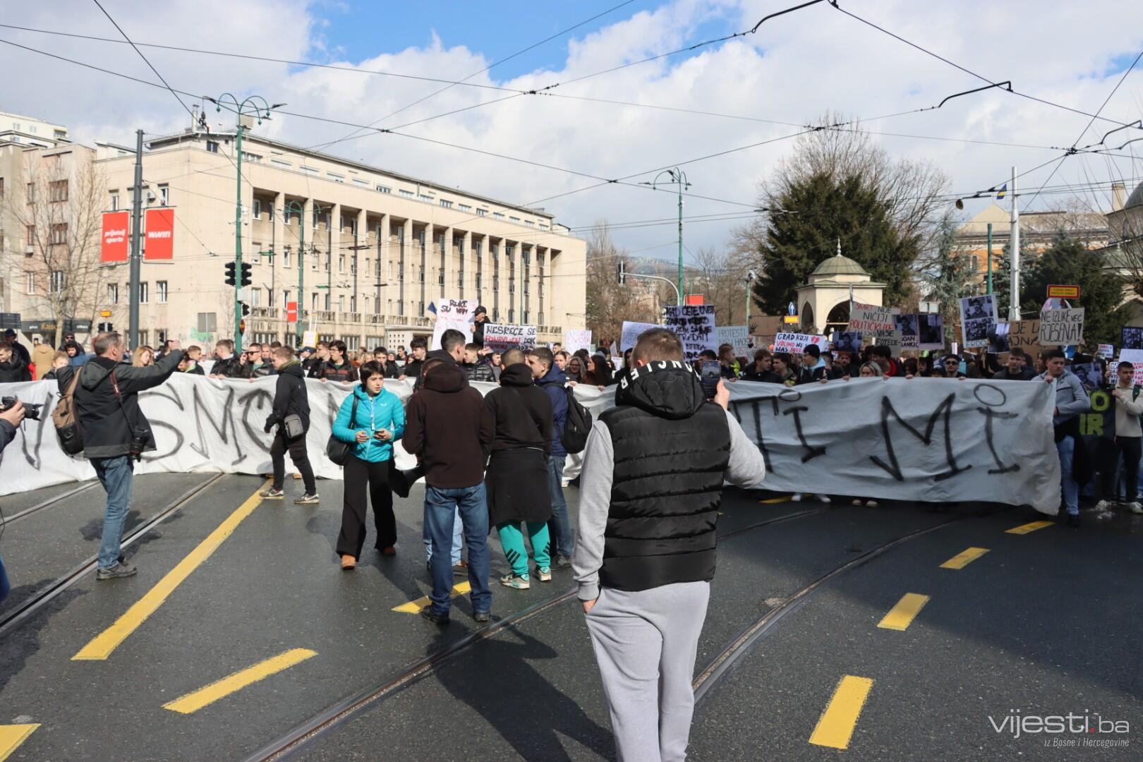 "Nismo stranački ljudi, mi smo omladina koja je došla da se bori za svoja prava. Idemo do Skenderije, okrenut ćemo se nazad, stat ćemo da momci pročitaju što imaju i to je to", rekao je.