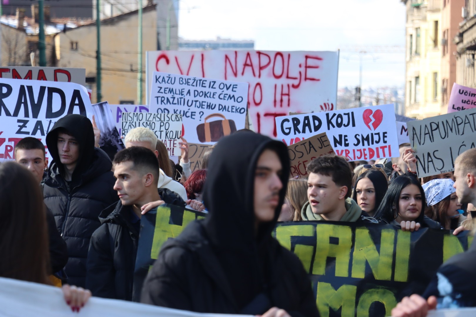 "Koga ćete slati u školu, ako nas pobijete", "Zar je potrebno da nas tramvaji ubiju, da bi Vlada nešto poduzela", glasile su neke od poruka a dan prije toga su demonstranti predstavili svoje zahtjeve.
