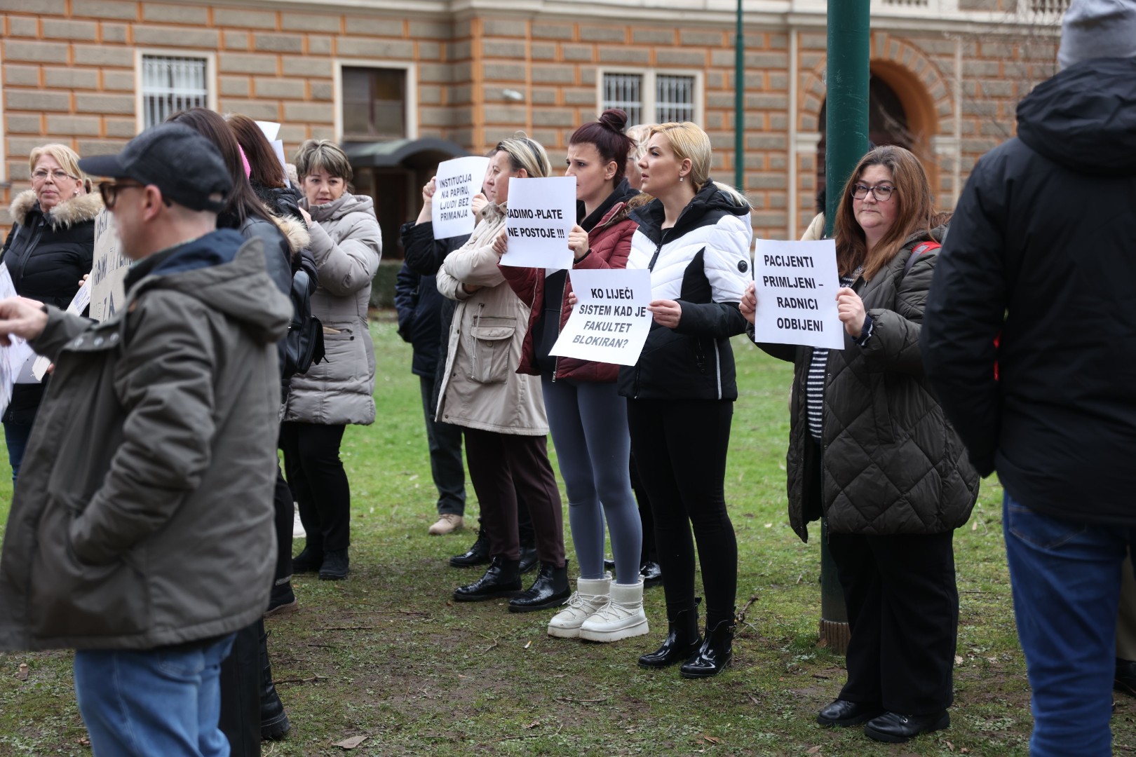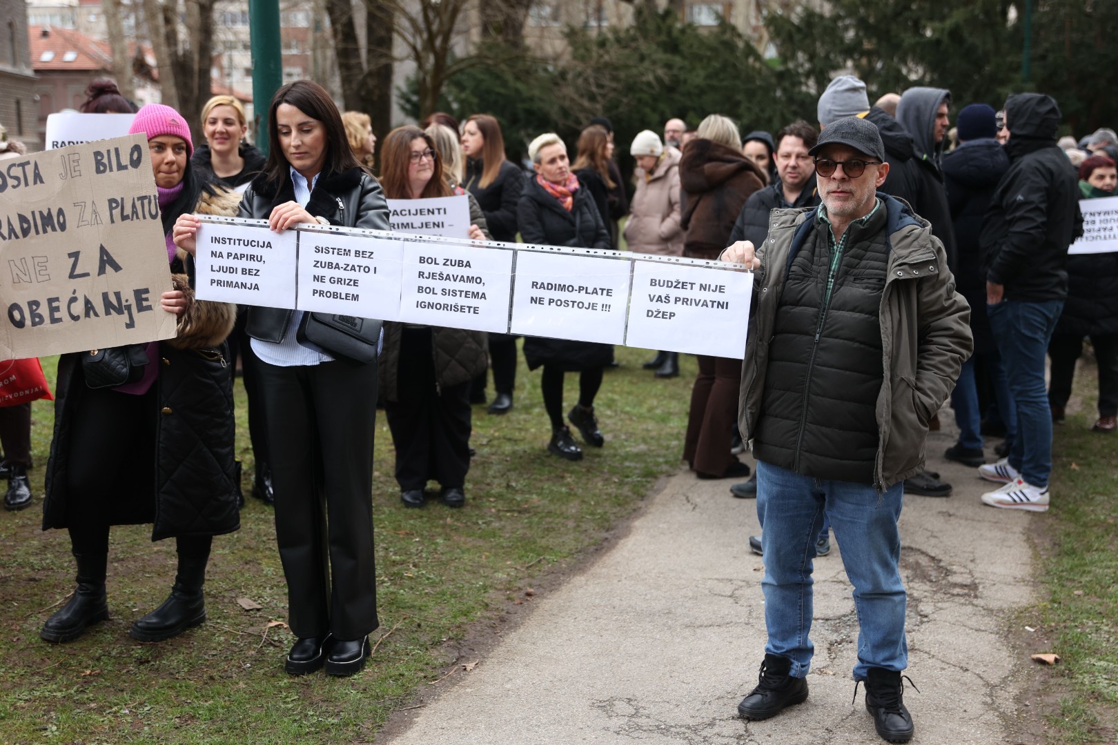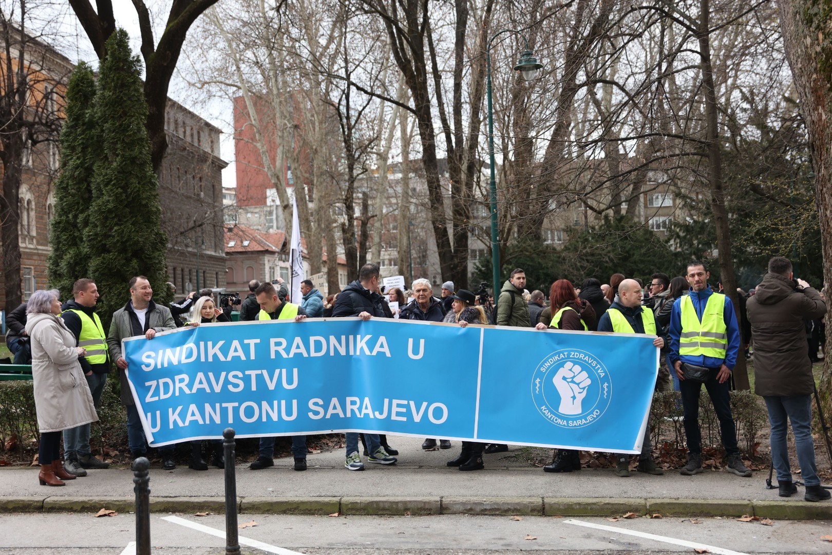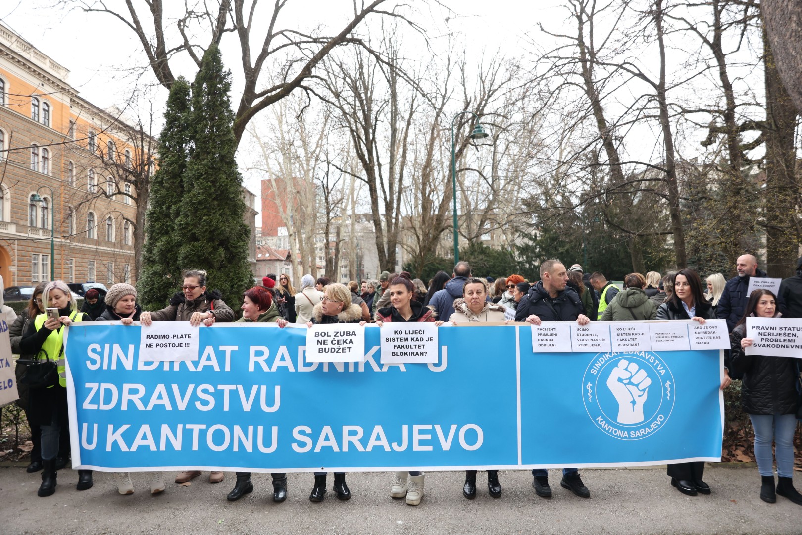 Sindikat zdravstvenih radnika Kantona Sarajevo danas ispred zgrade Vlade KS održava mirni protest zbog neisplaćene plate, ali i stanja na Stomatološkom fakultetu.