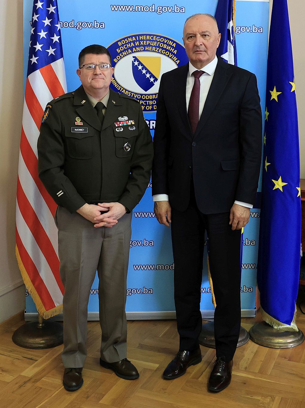 Na sastanku kojem su prisustvovali i otpravnik poslova Ambasade Sjedinjenih Američkih Država u BiH John Ginkel, pomoćnik ministra odbrane BiH za međunarodnu saradnju Zoran Šajinović i vojni izaslanik SAD-a brigadir Gregory Holmes sa saradnicima, razgovarano je o bilateralnoj vojnoj saradnji Bosne i Hercegovine i Sjedinjenih Američkih Država te mogućnostima njenog daljnjeg razvoja, saopćeno je iz Ministarstva odbrane BiH.