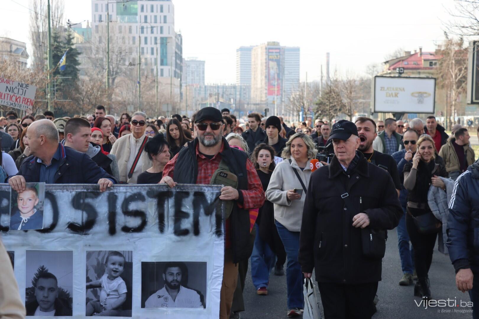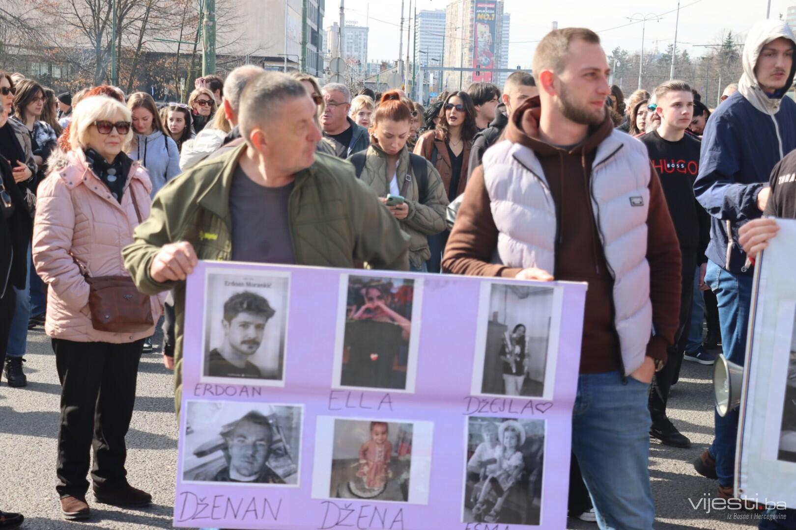 14.05 Okupljenim su se obratili otac preminule Esme Kaljanac, otac preminulog Dženana Memića i otac preminule Džejle Drapić. Pozvali su građane da se probude i traže pravdu.
