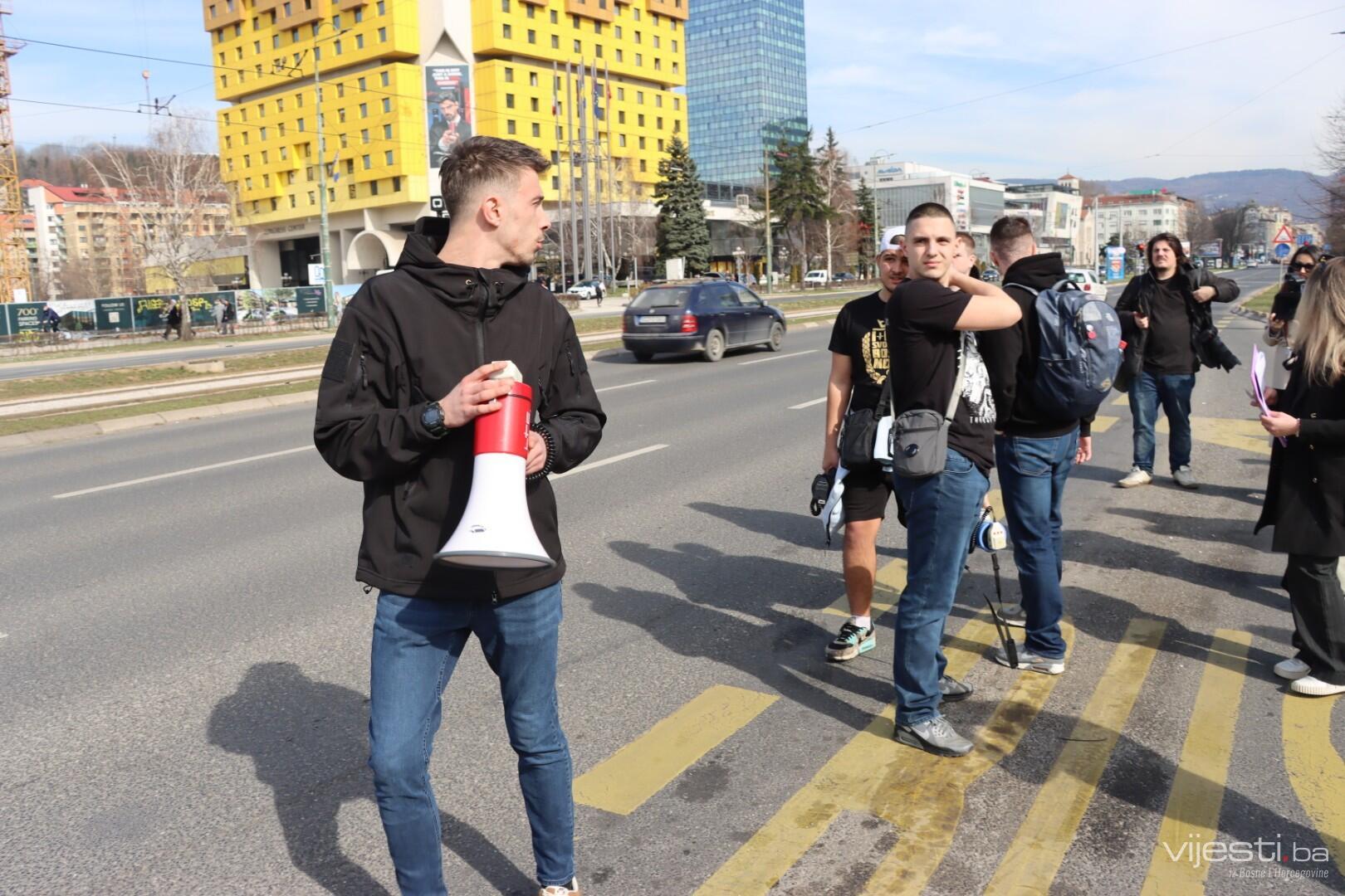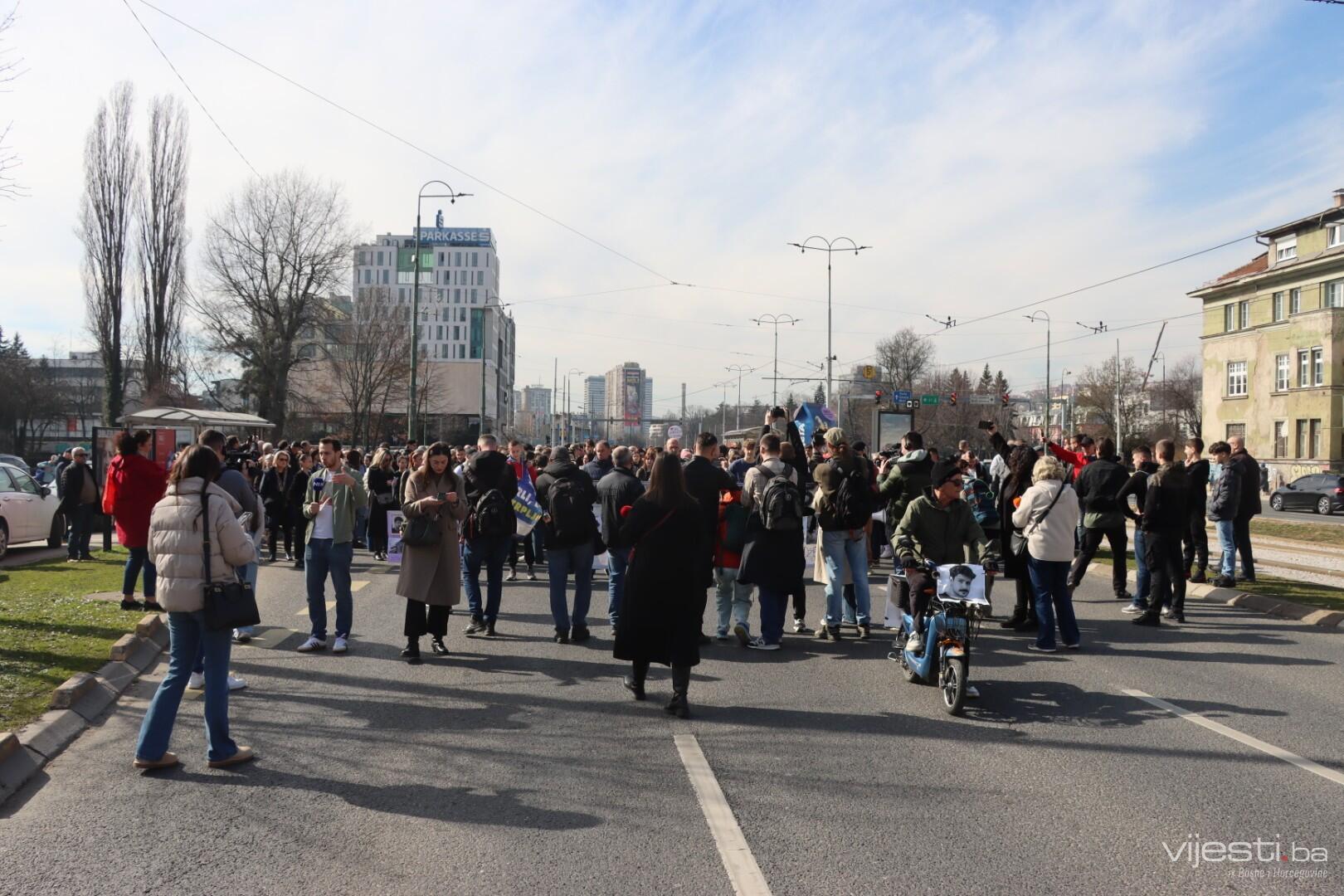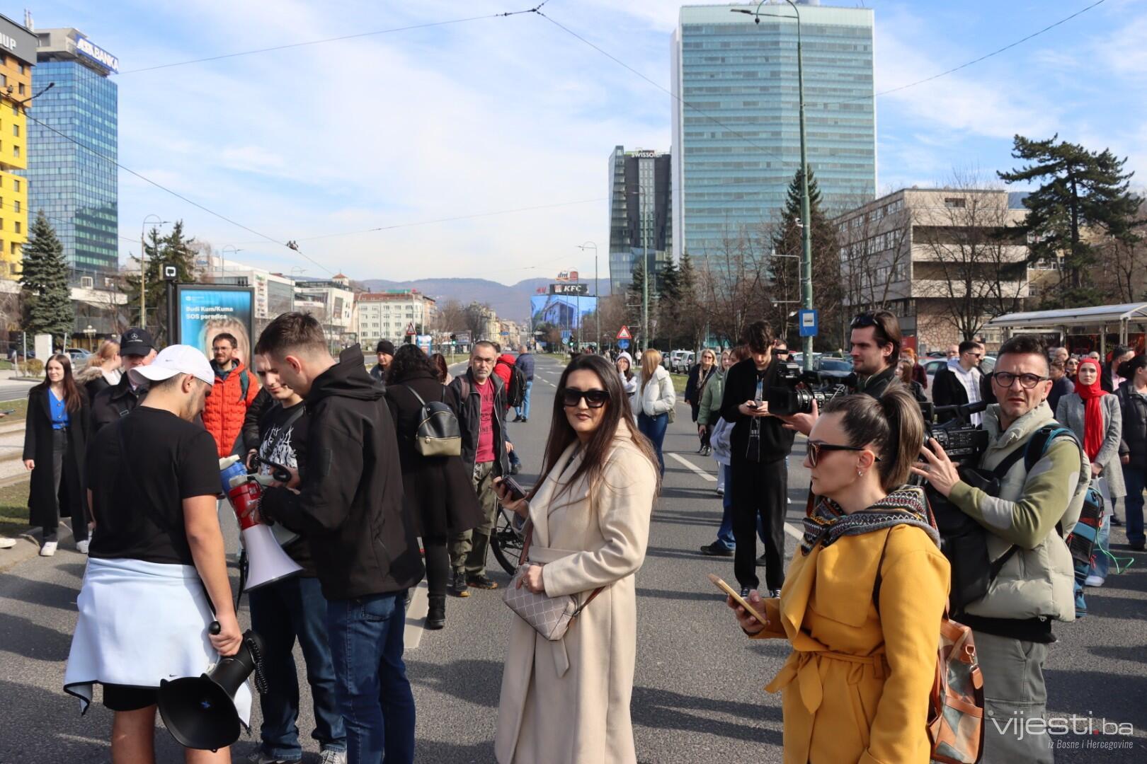 13:10 Okupljeni demostranti su upravo blokirali glavnu saobraćajnicu u ulici Zmaja od Bosne.