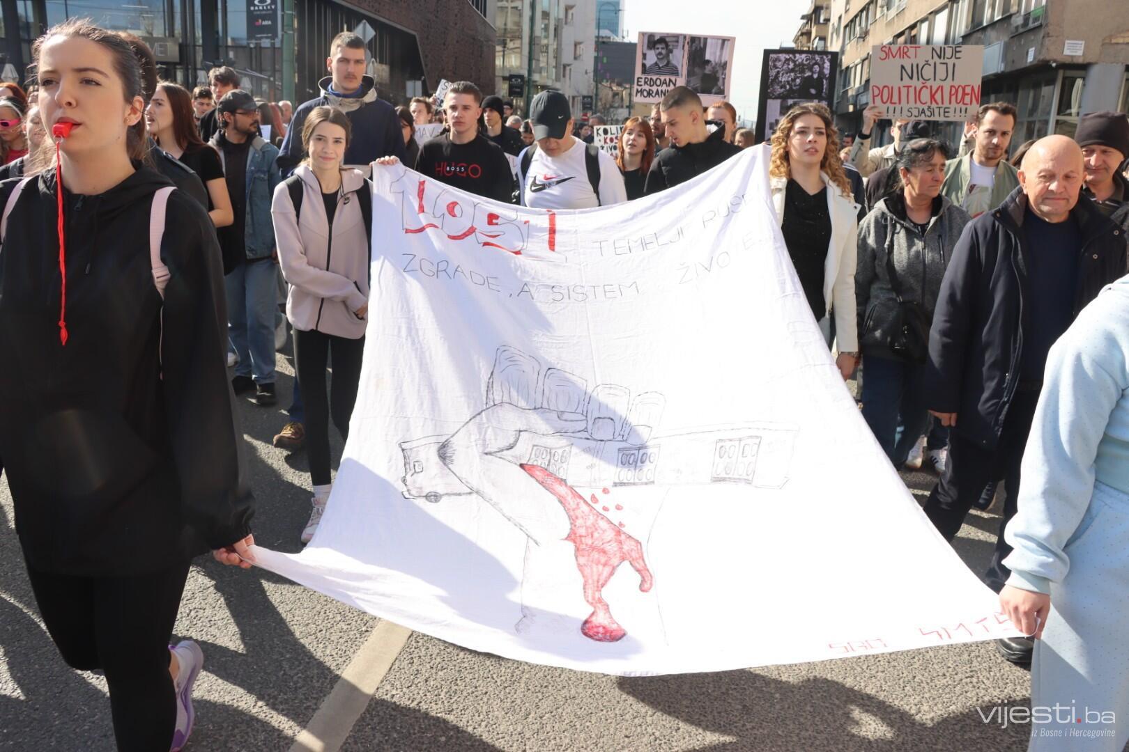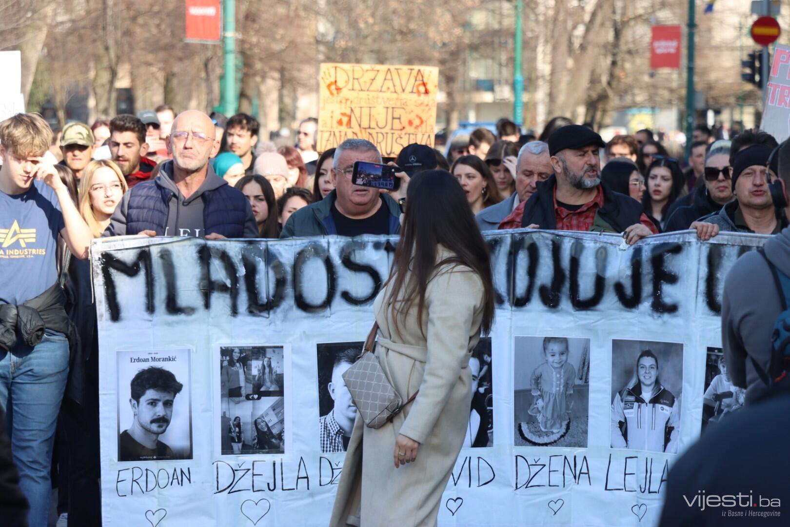 "Dajte da ove žrtve budu zadnje. Nama je dosta preživljavanja. Boli me njihova bol. Boli li njih ijedna suza? Ovo je sve, ali nije metropola. Dobili ste zahtjeve... Erdoan je bio u studentskom domu, nije imao tu dostojanstven život. Vrijedi li život studenata u studentskim domovima? Država treba da bude u službi građana, dosta je da bude u službi pojedinaca. Dosta je. Da se ne ponovi ni Džejla ni Hamza ni Erdoan. Nema više odugovlačenja jer ćemo mi početi suditi", kazala je.