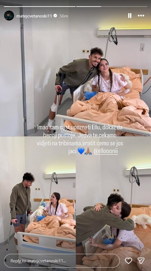 “Imao sam čast upoznati Ellu, dokaz da heroji postoje. Jedva te čekamo vidjeti na tribinama, vratit ćemo se još jači”, napisao je Cvetanoski na Instagram storyju.