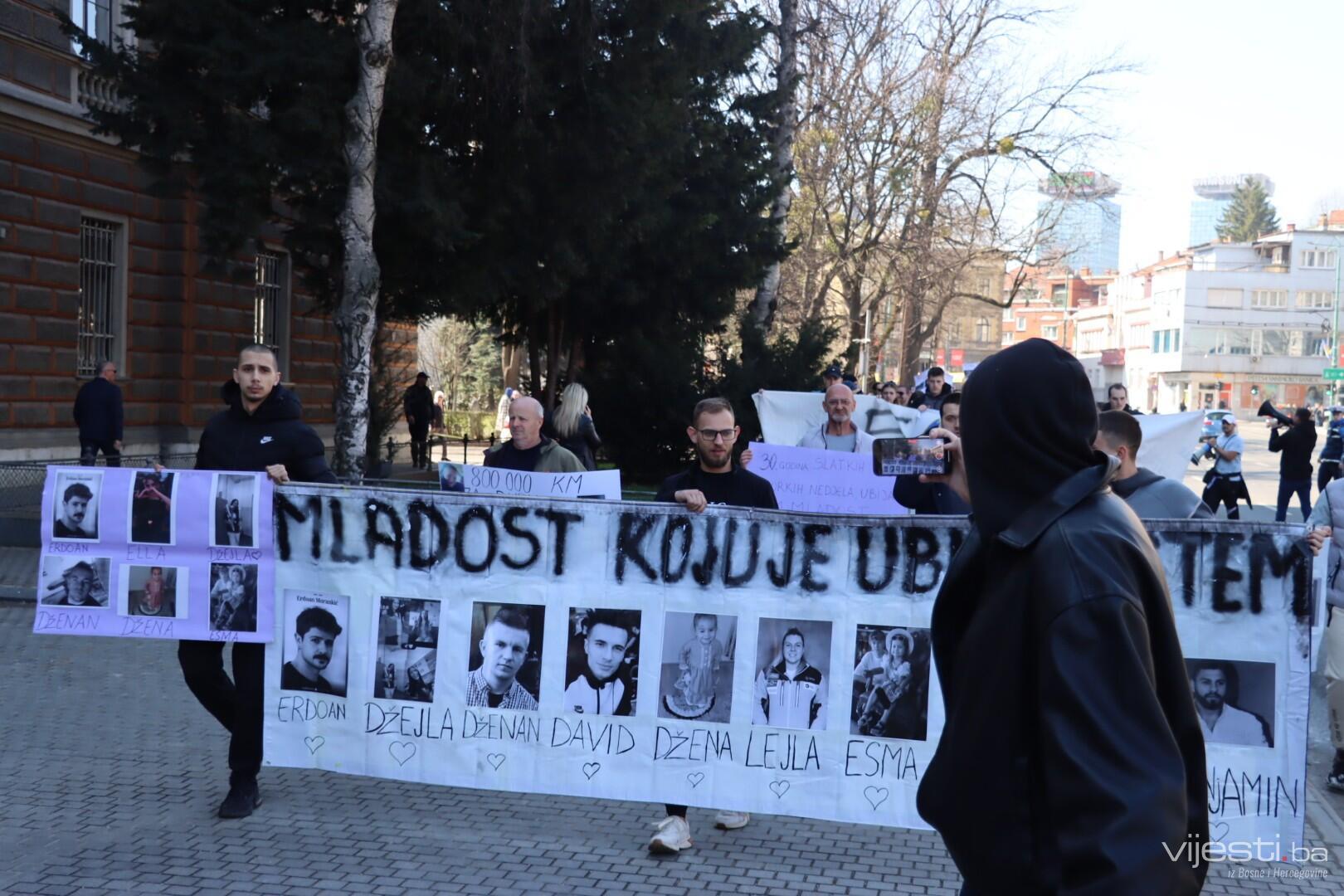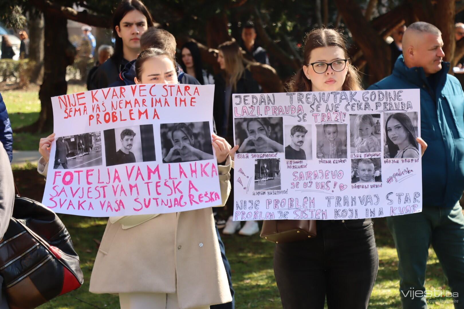 Počeli su novi, deveti po redu, protesti građana u Sarajevu nakon tragične tramvajske nesreće u kojoj je poginuo Erdoan Morankić, a teže povrijeđena Ella Jovanović.