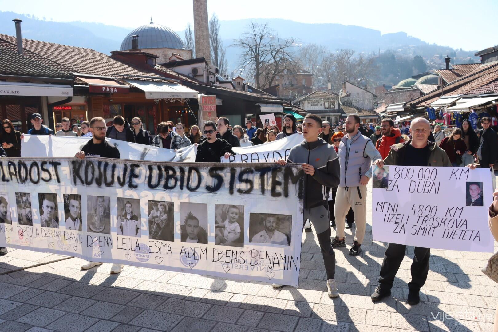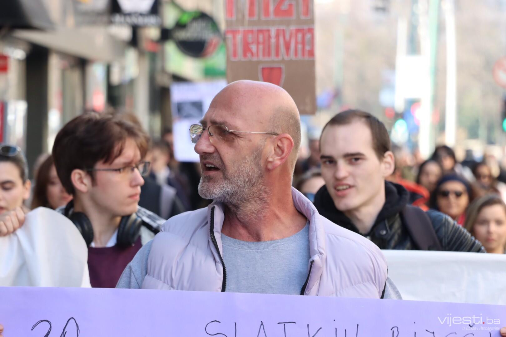 Mladi, koji su došli na protest ispred Skupštine Kantona Sarajevo, krenuli su u mirnu šetnju prolazeći kroz centralni dio glavnog grada.