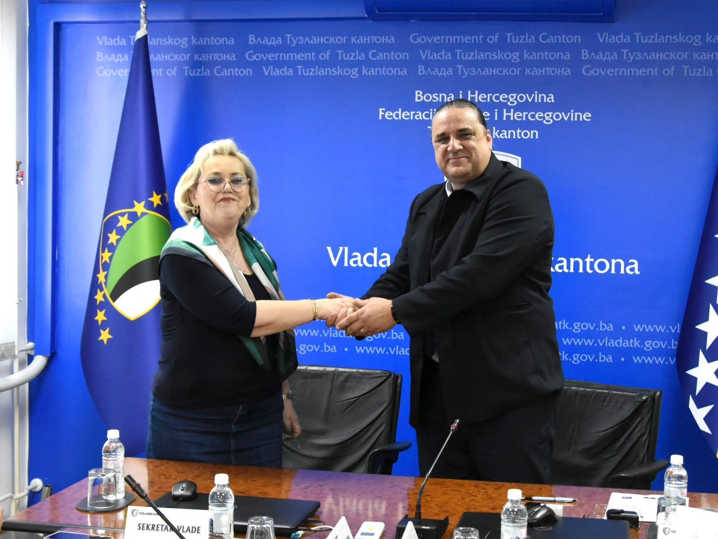 Ministrica zdravstva Tuzlanskog kantona Dušanka Bećirović i predsjednik Nezavisnog strukovnog sindikata radnika zaposlenih u zdravstvu Tuzlanskog kantona Saša Bujić potpisali su Sporazum o mirnom rješavanju kolektivnog radnog spora.