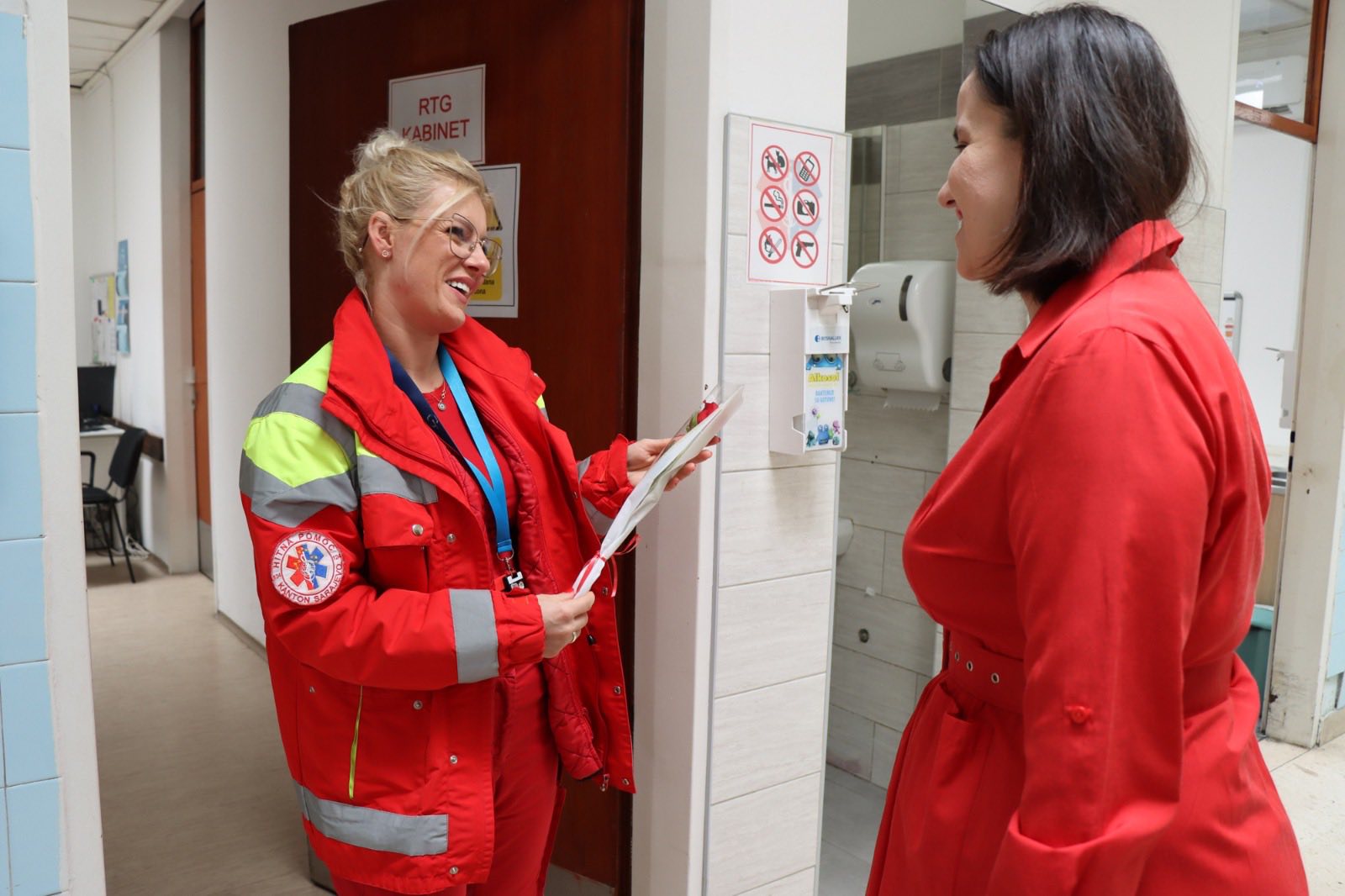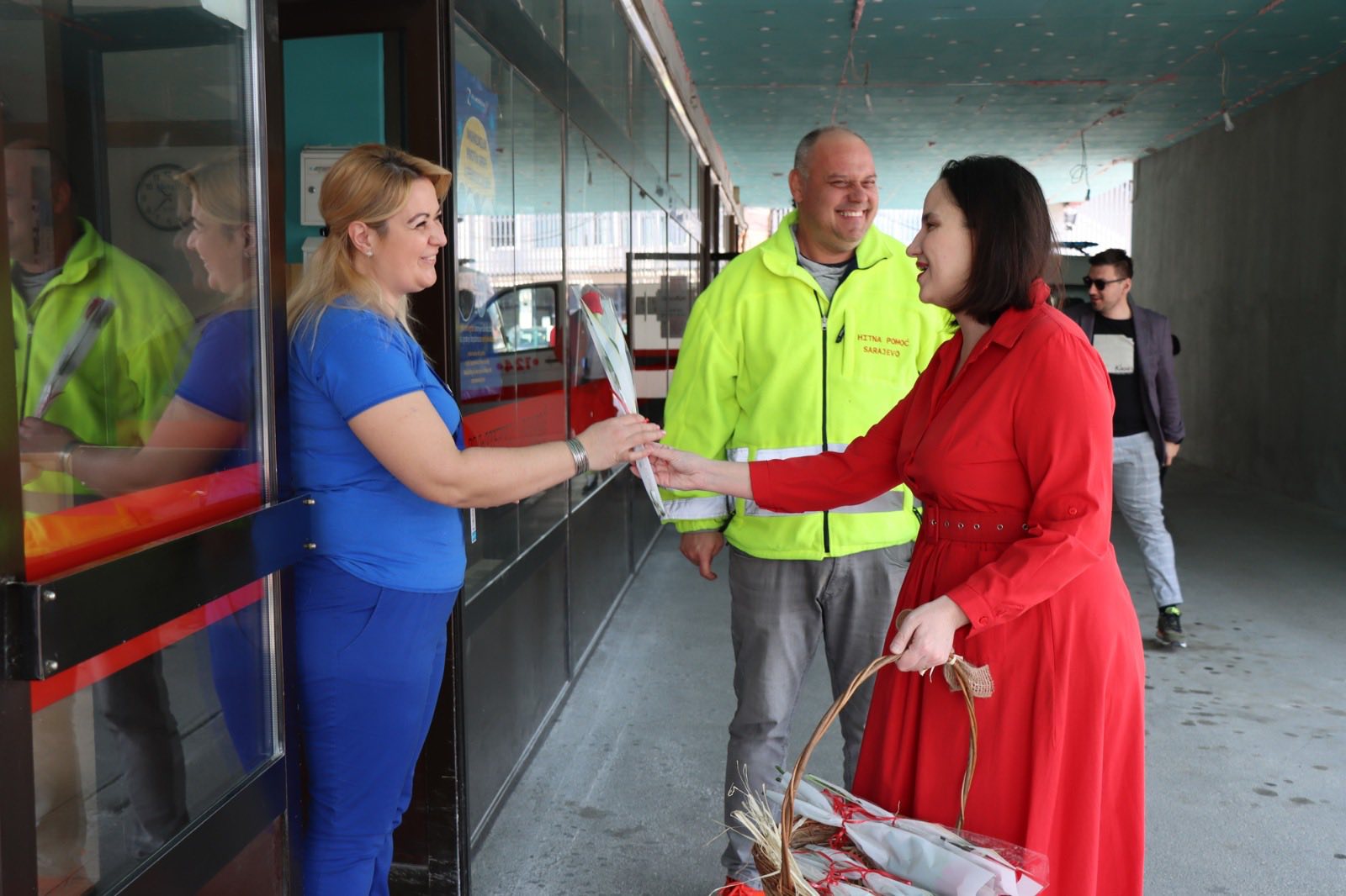Ruže su uručene ženama koje danas vrijedno rade u apotekama, Zavodu za hitnu medicinsku pomoć, ugostiteljskim objektima i pekarama kao mali znak pažnje i zahvalnosti za njihov svakodnevni trud, posvećenost i brigu o drugima.