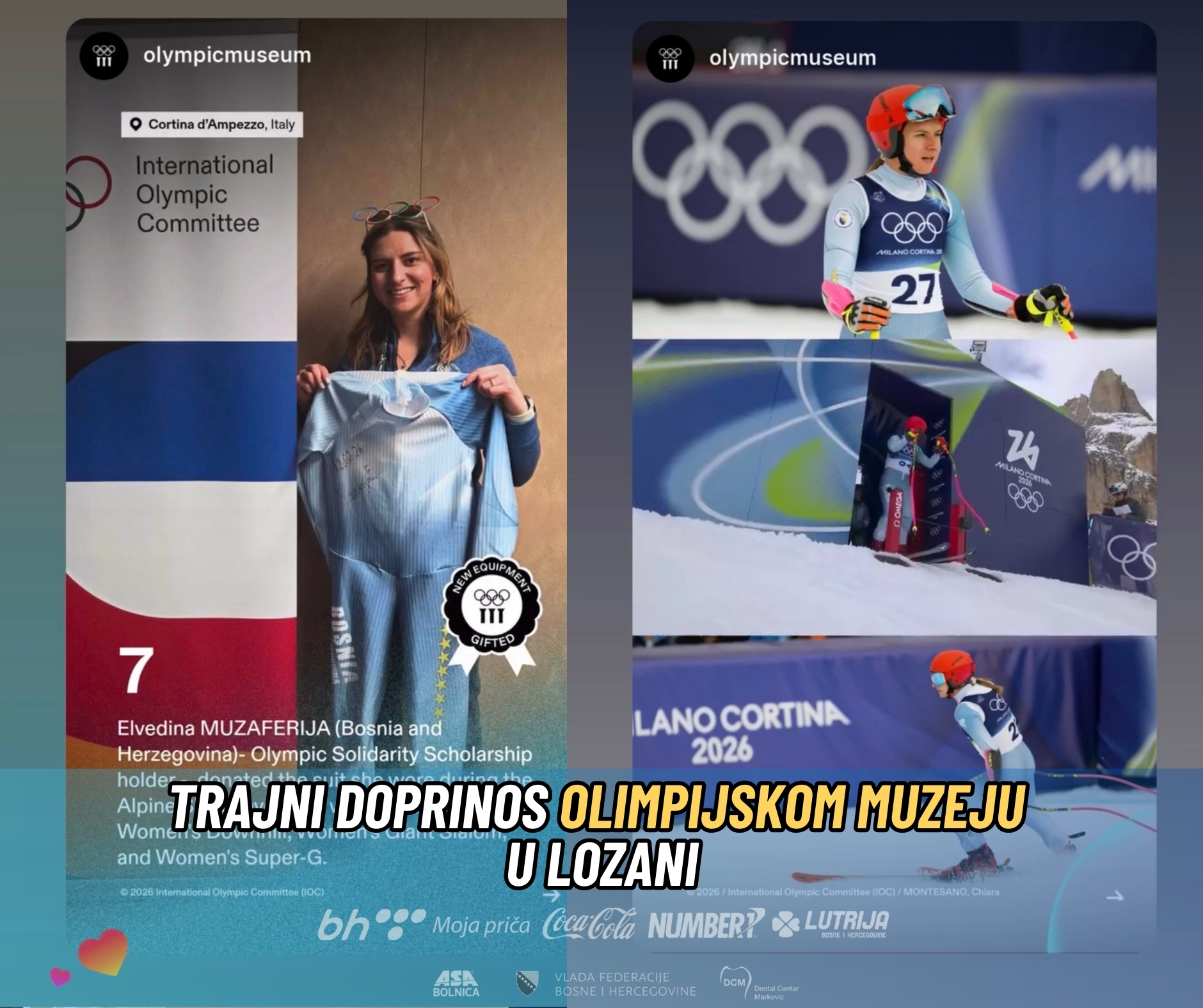 Na poziv Međunarodnog olimpijskog komiteta, Elvedina Muzaferija, najbolja bh. skijašica, donirala je svoju opremu koja će ostati u Olimpijskom muzeju u Lozani kao trajni simbol hrabrosti i uspjeha.