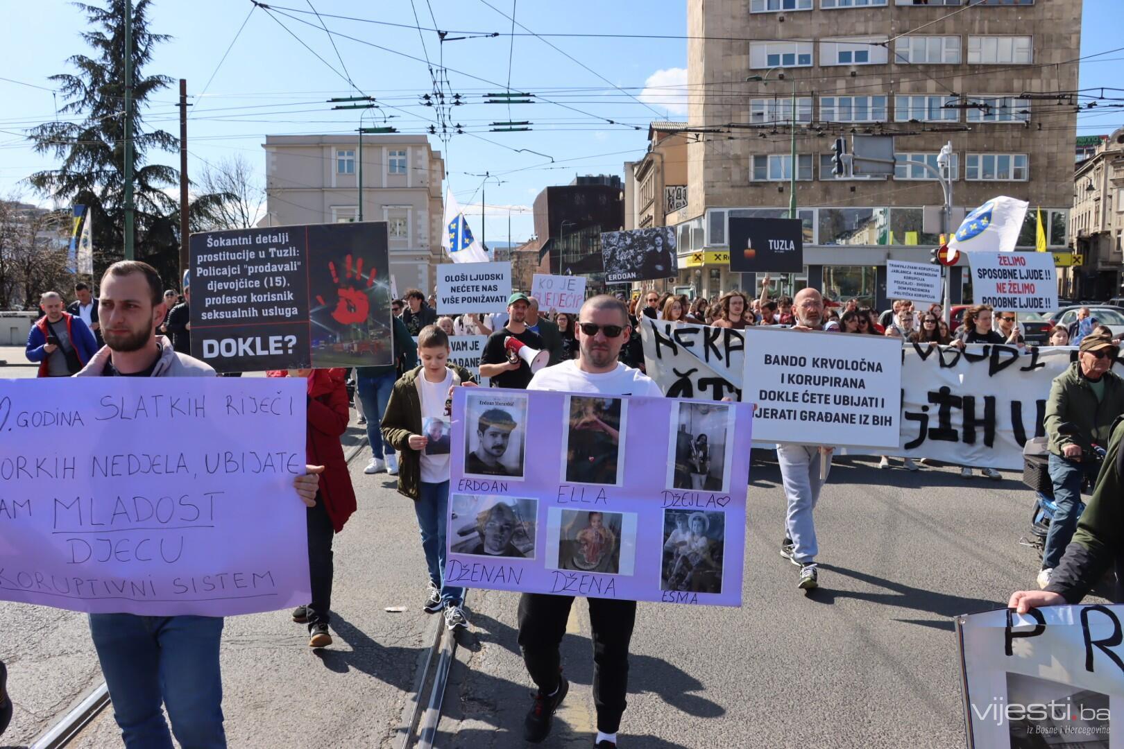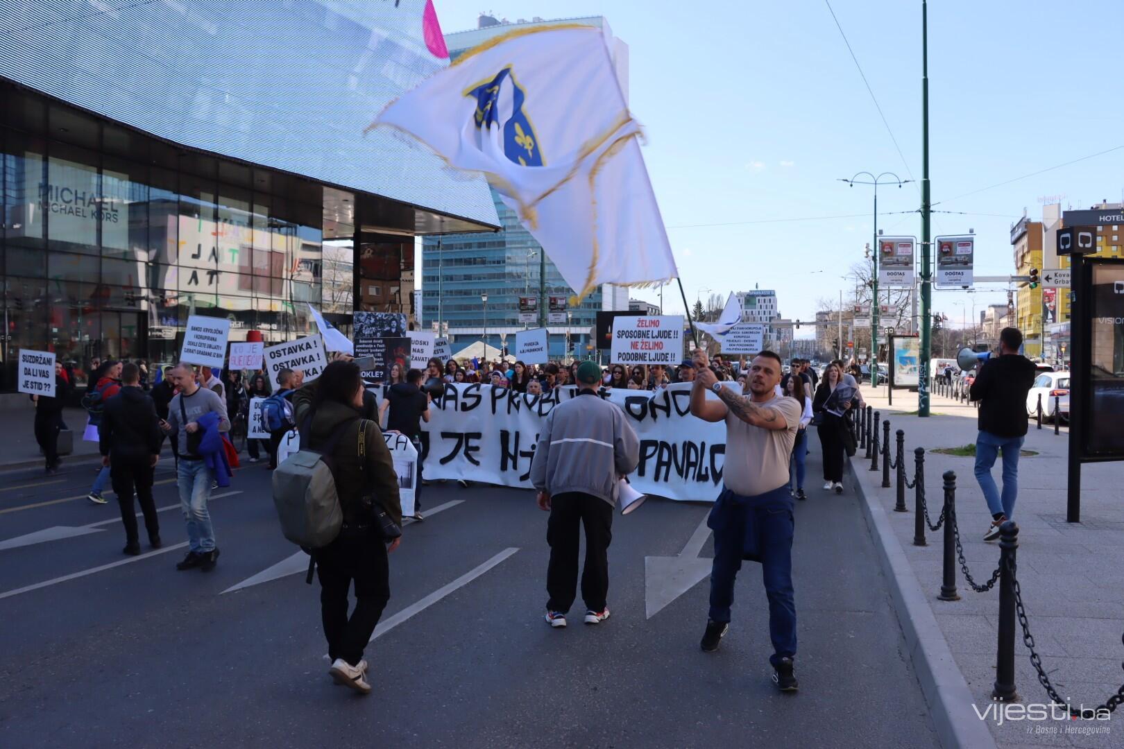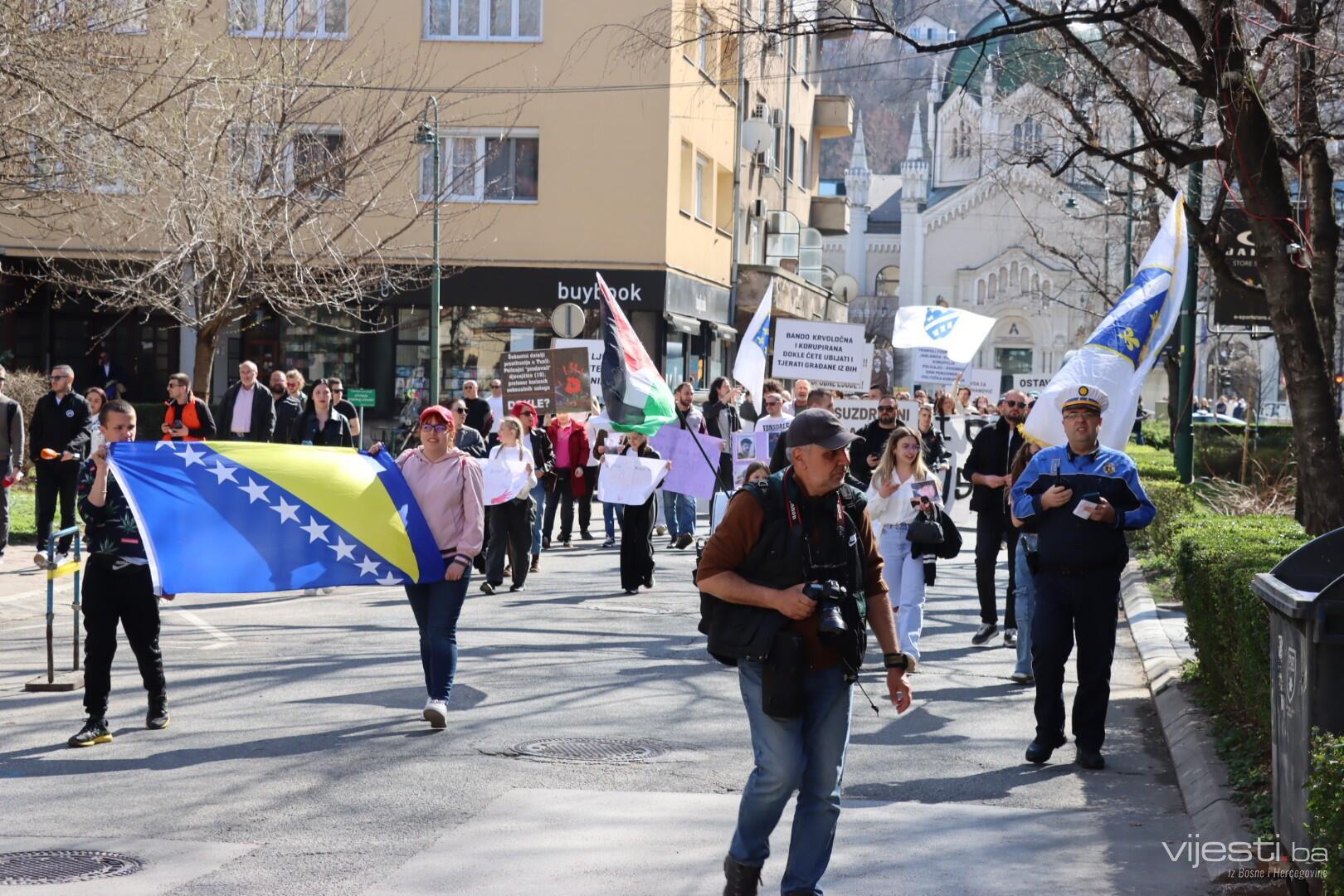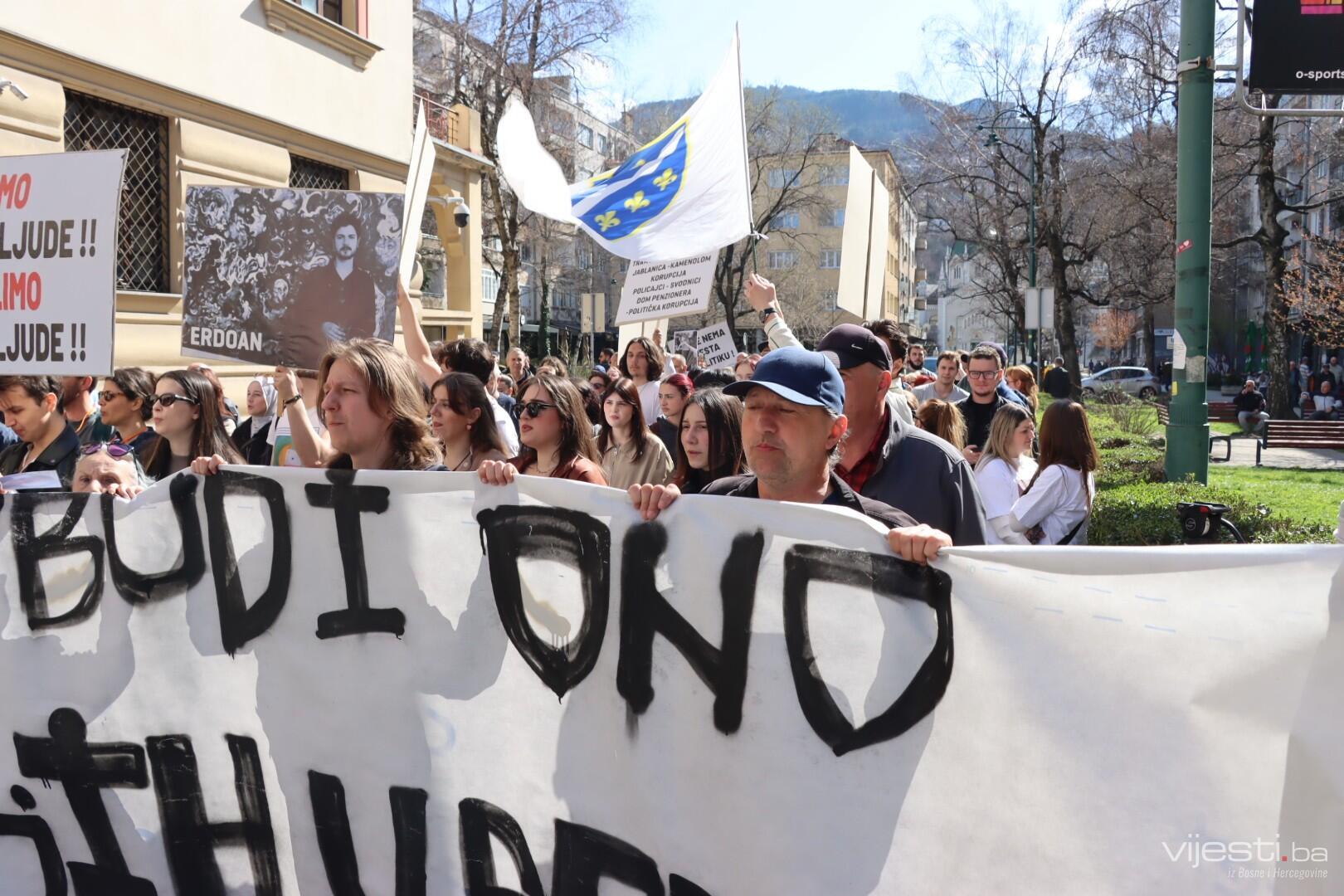 12:35 - Kao i prethodnih puta, blokirana je glavna cesta. Građani sa transparentima šetaju Sarajevom.