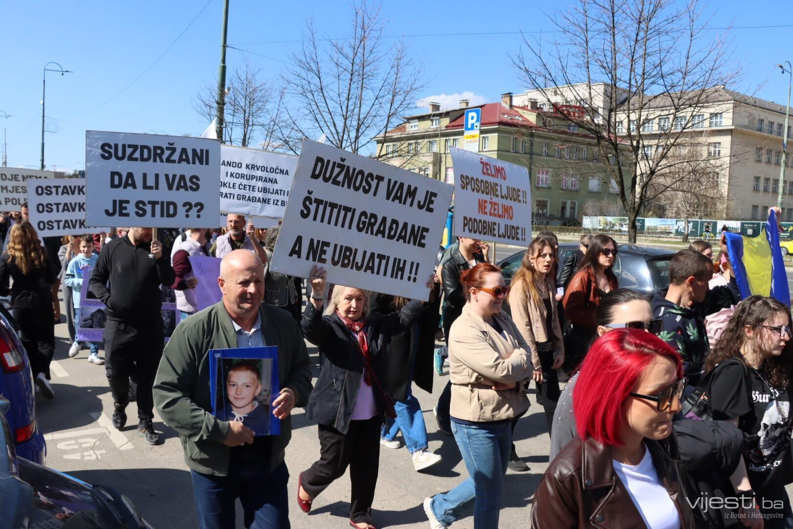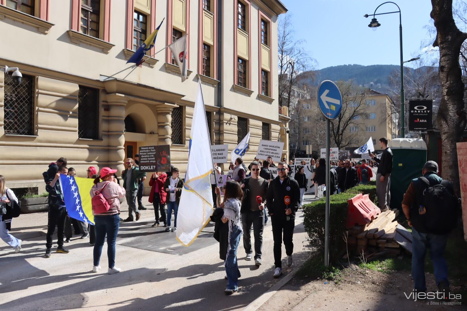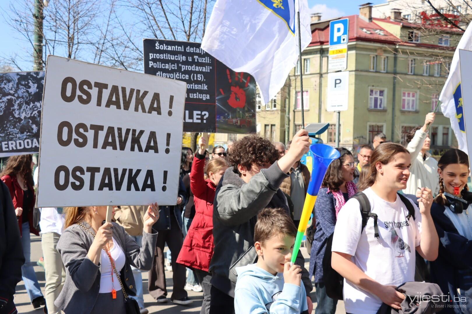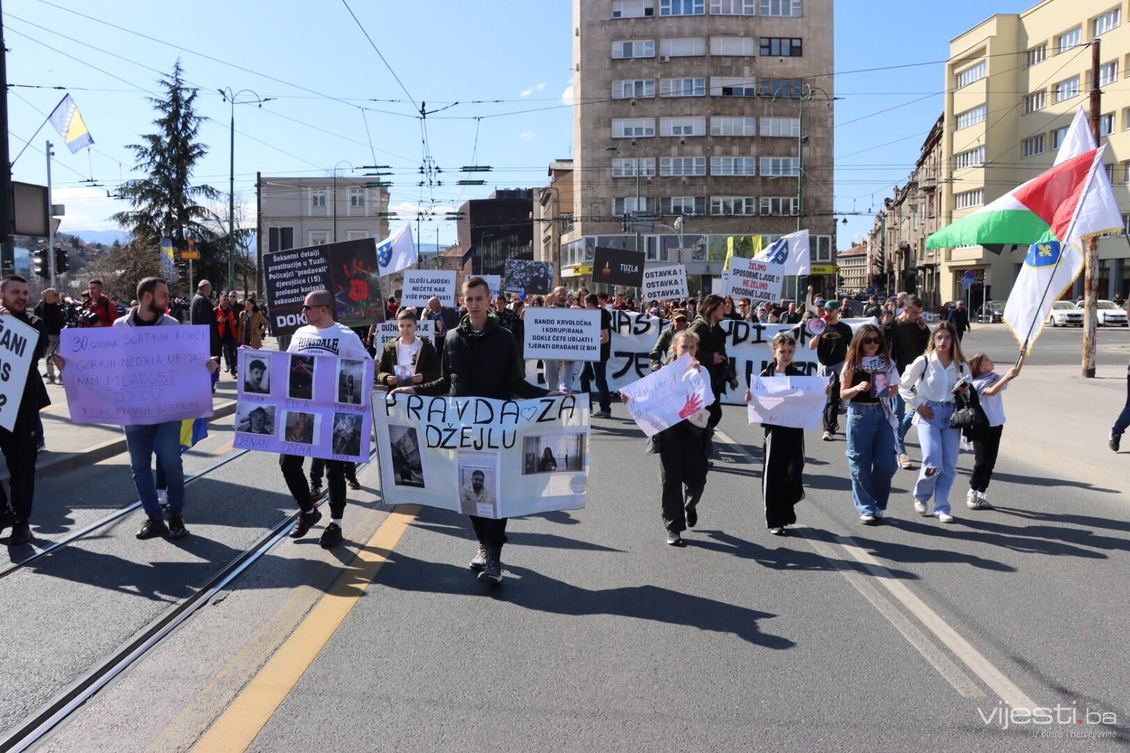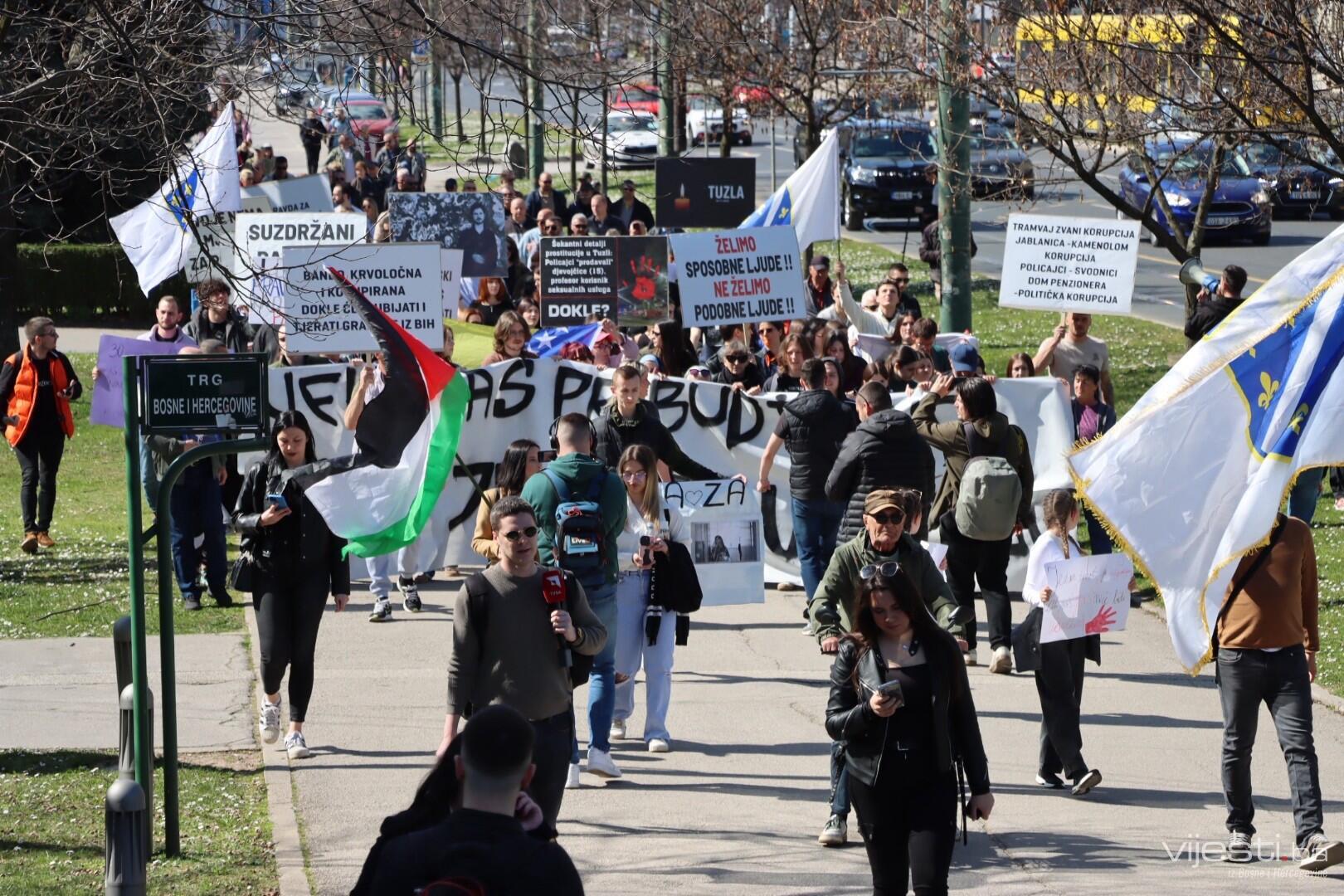 12:35 - Kao i prethodnih puta, blokirana je glavna cesta. Građani sa transparentima šetaju Sarajevom.