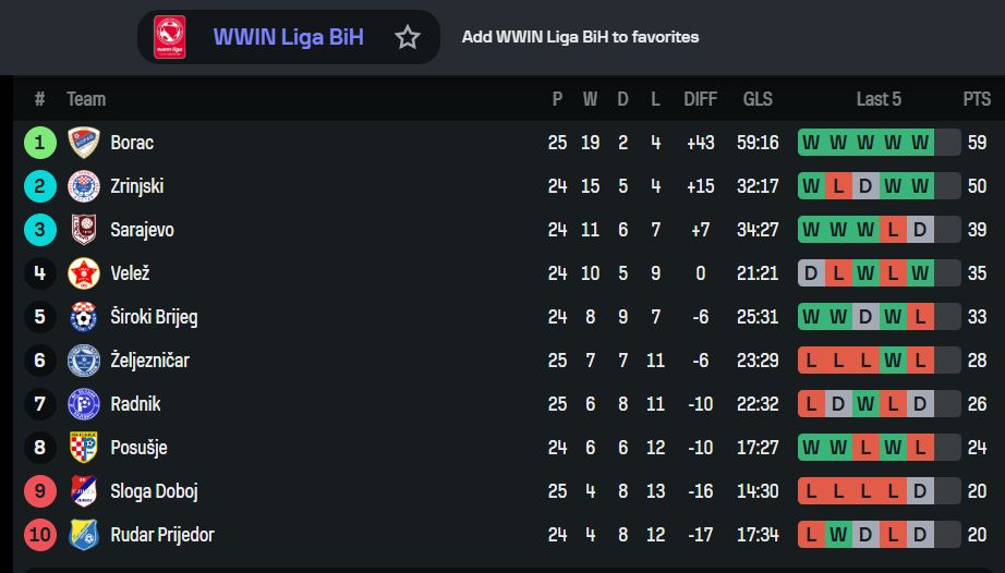Tri utakmica prvenstva Bosne i Hercegovine na rasporedu je danas. Igra se 25. kolo.