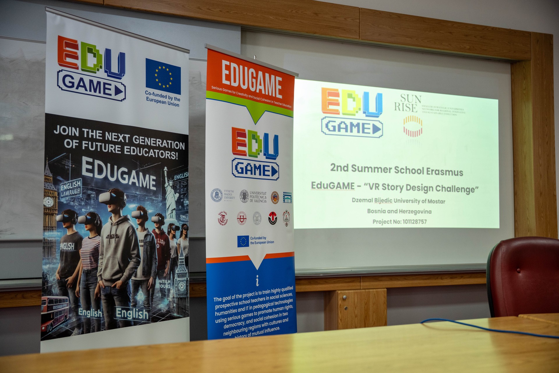 Na Univerzitetu „Džemal Bijedić“ u Mostaru uspješno je realizirana druga ljetna škola u okviru Erasmus+ projekta EduGAME, pod nazivom „VR Story Design Challenge“, koja je okupila više od 150 studenata iz Bosne i Hercegovine i inozemstva.
