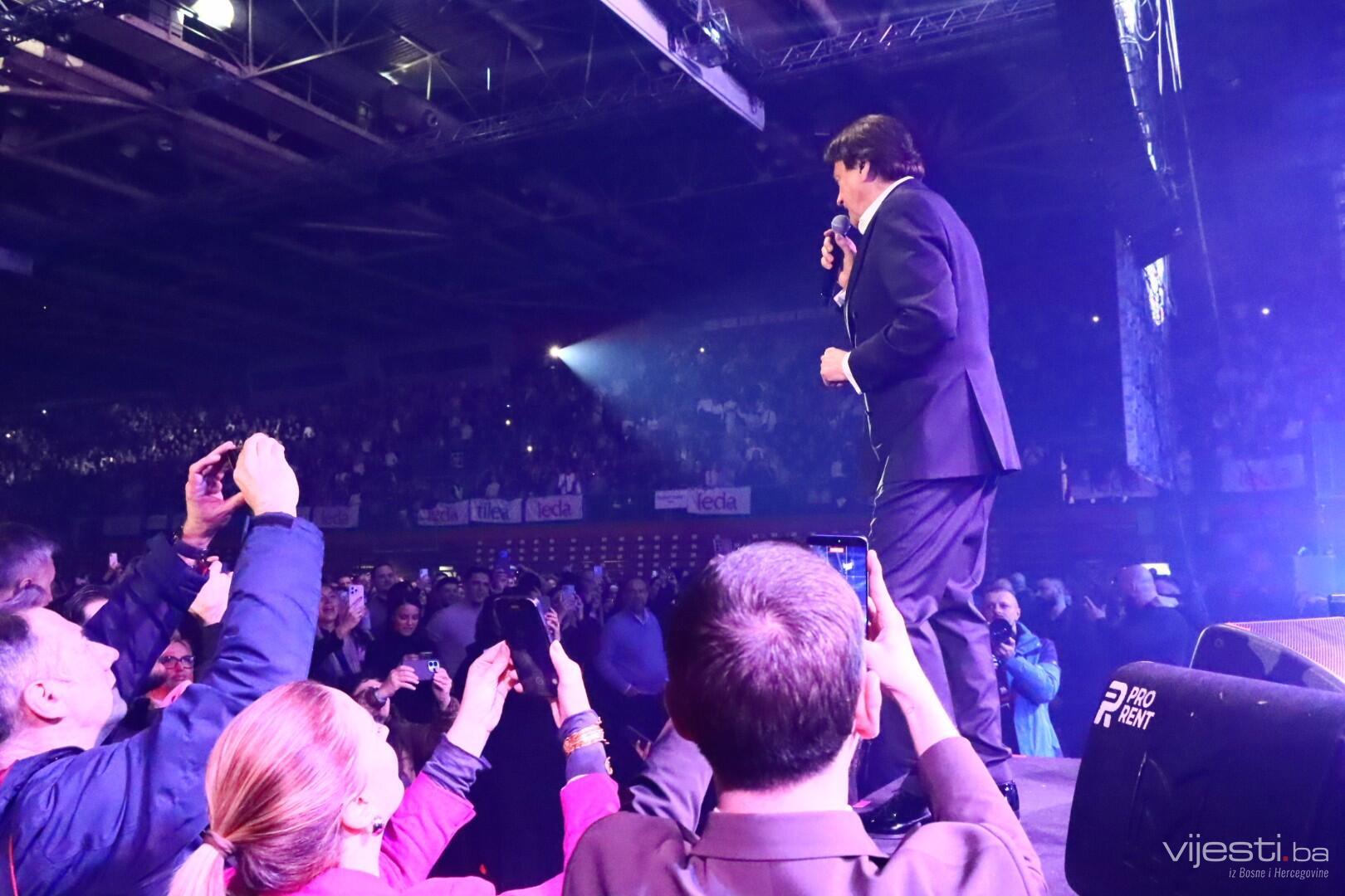 Prisjećajući se svojih početaka u Skenderija i festivala „Vaš šlager sezone“, evocirao je uspomene na prve korake uz pjesme Kemala Montena, nakon čega je uslijedila snažna reakcija publike koja je uglas pjevala „Sinoć nisi bila tu“.