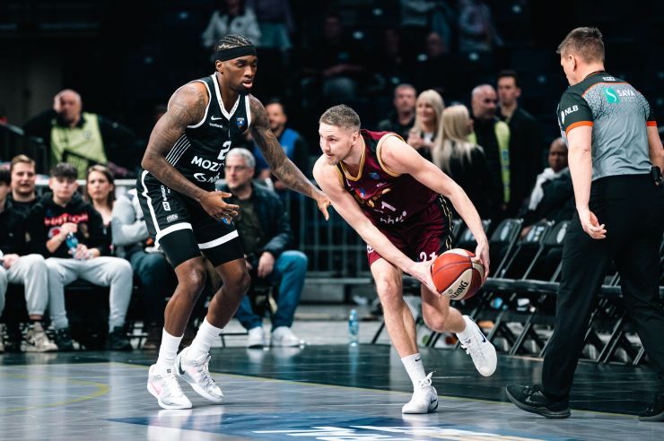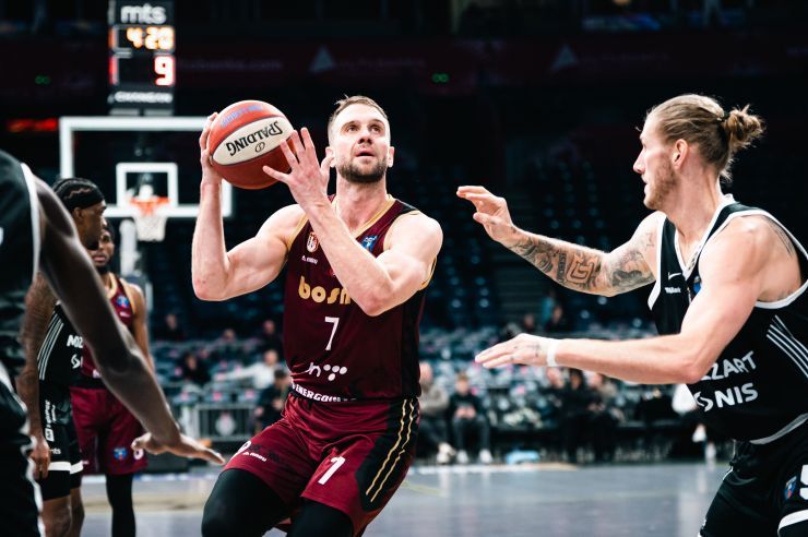 Domaći tim je silovito otvorio drugo poluvrijeme — serijom poena odmah na startu, a potom i trojkom Pokuševskog kojom odlaze na dvocifrenu prednost (+10). Uslijedila je nova preciznost s distance, pa Partizan vrlo brzo dolazi i do maksimalnih +13, potpuno preuzimajući kontrolu nad susretom.