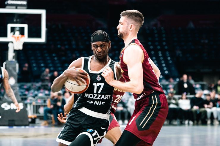 Sredinom druge dionice Partizan ubacuje u višu brzinu. Serija pogođenih šuteva za tri poena, uz dominantan ofanzivni skok, donosi domaćima osjetniju prednost (+8).