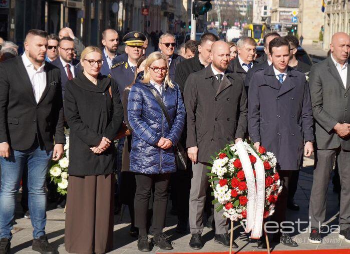 Delegacije svih nivoa vlasti, predstavnici institucija, boračkih organizacija i građani položili su cvijeće i odali počast na spomen-obilježju Vječna vatra i Šehidskom mezarju Kovači, a potom spomen-obilježju ubijenoj djeci opkoljenog Sarajeva, spomen-obilježju ubijenim policajcima u Velikom parku i spomen-parku Vraca.