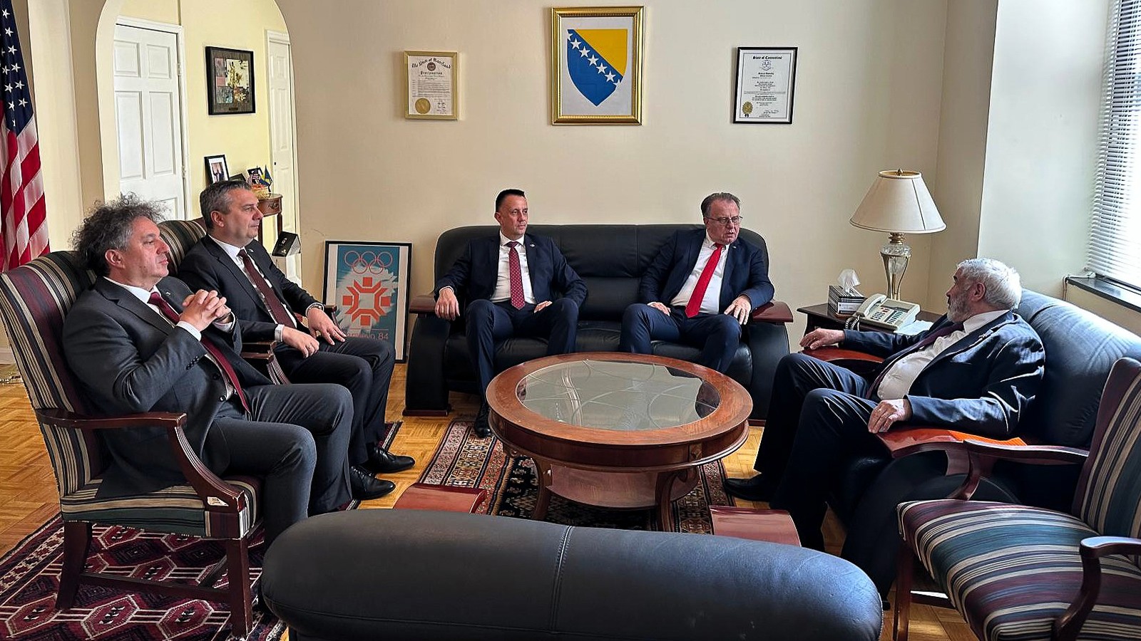 Delegacija Vlade Federacije BiH posjetu SAD-u počela je susretom sa ambasadorom Bosne i Hercegovine u Sjedinjenim Američkim Državama Svenom Alkalajem, a održan je i sastanak sa visokim službenikom američkog biroa za evropske i evroazijske poslove Brendanom P. Hanrahanom.