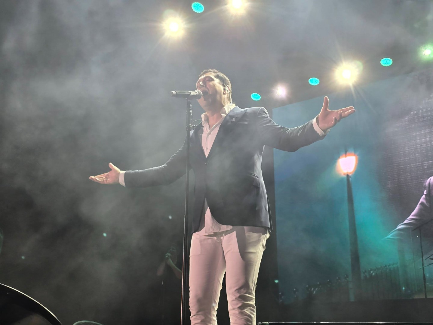 Pejović je na početku koncerta pozdravio publiku i iskoristio priliku da čestita plasman Zmajeva na Svjetsko prvenstvo, naglasivši koliko takvi uspjesi znače ljudima u zemlji.