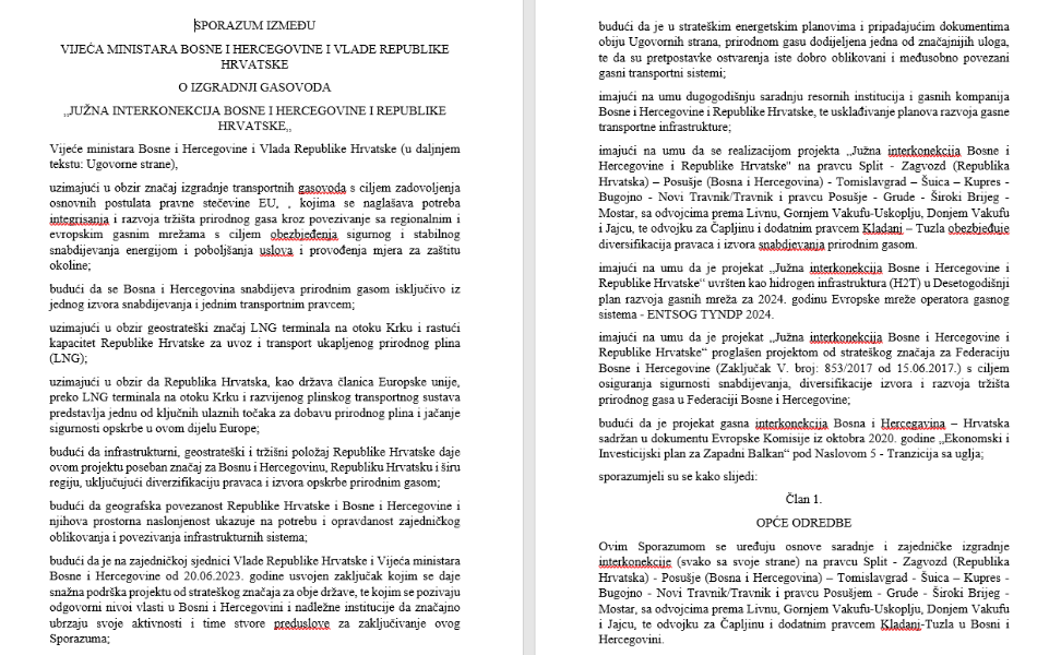 BiH i Hrvatska potpisale Sporazum o izgradnji Južne plinske interkonekcije
